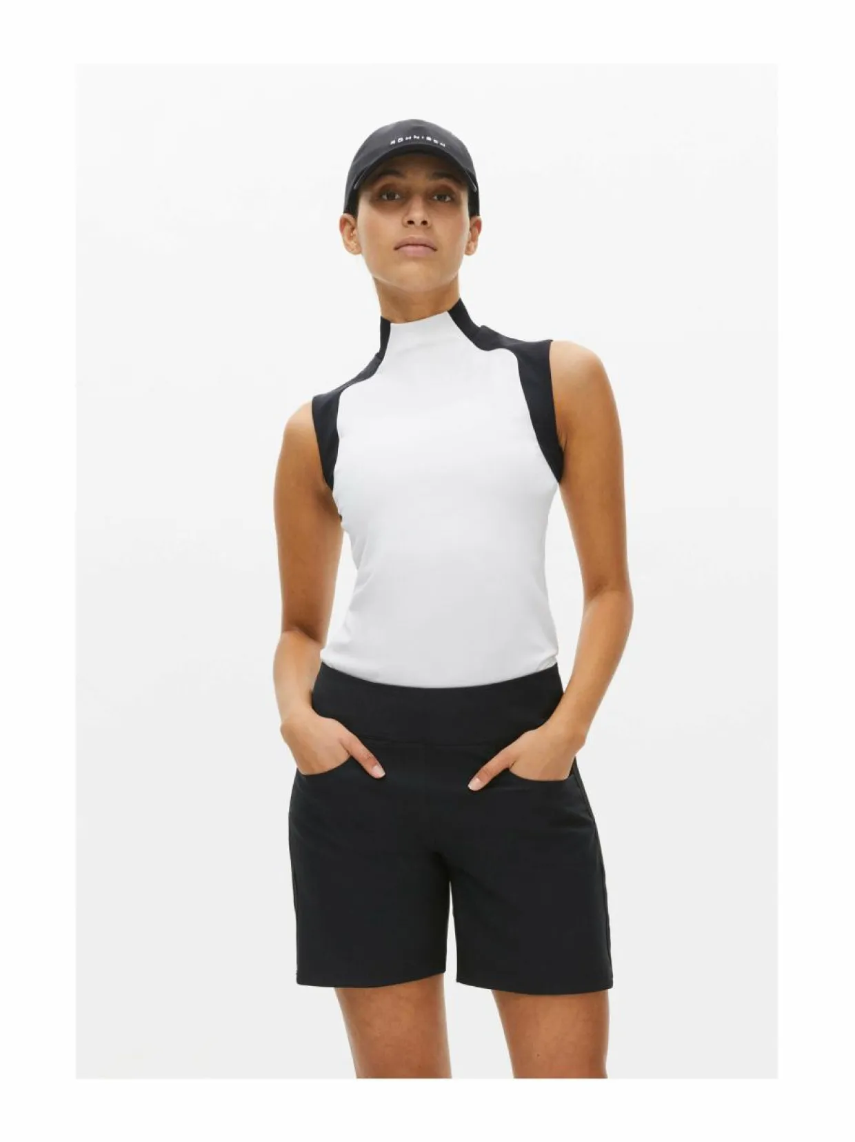 Röhnischin hihaton urheilupaita on valmistettu kierrätetystä polyesterista ja joustoa antavasta elastaanista. Kangas kuivuu nopeasti ja pitää olosi viileänä, oli ohjelmassa sitten spinningtunti tai piknik ystävien kanssa. Kontrastikaulus lisää särmää, ja selässä oleva Röhnisch-logoprintti viestittää merkin laadukkuutta ilman että siitä tulee liian päällekäyvä.