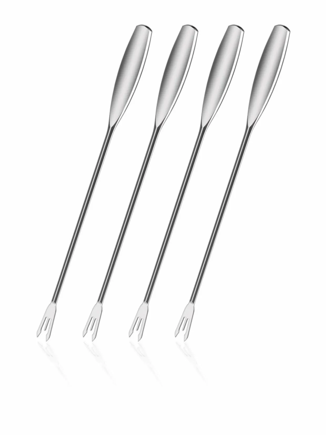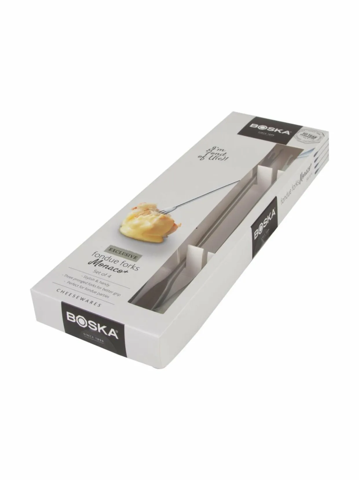 Tyylikkäät ja käytännölliset fonduehaarukat sopivat fonduejuhlaan sekä juuston että suklaan kanssa. Fonduehaarukat on valmistettu ruostumattomasta teräksestä. Pakkauksessa on neljä haarukkaa. Valmistajan takuu on 10 vuotta.