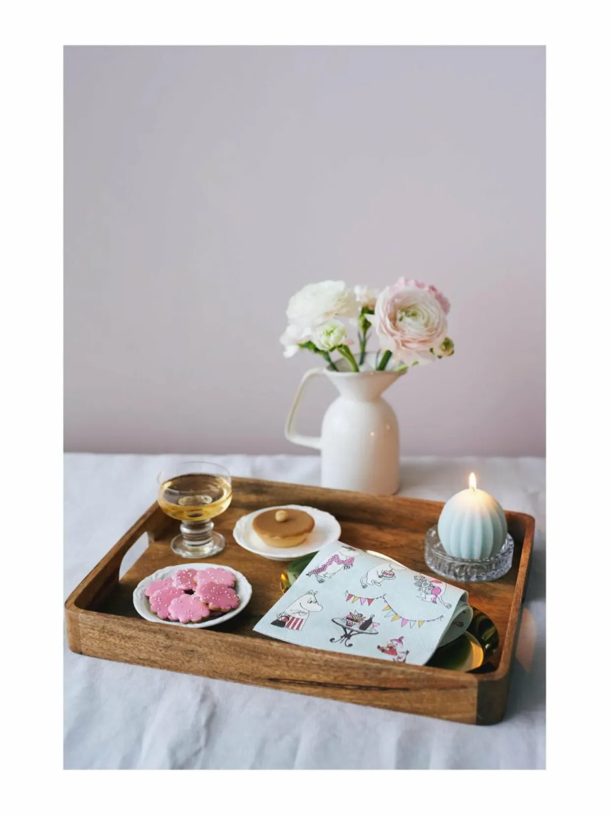 Pirteillä Muumin Kestit lautasliinoilla tuot leikkisää tunnelmaa kattauksiin ja juhlapöytiin. Lautasliinat on valmistettu Havin tehtaalla Imatralla.