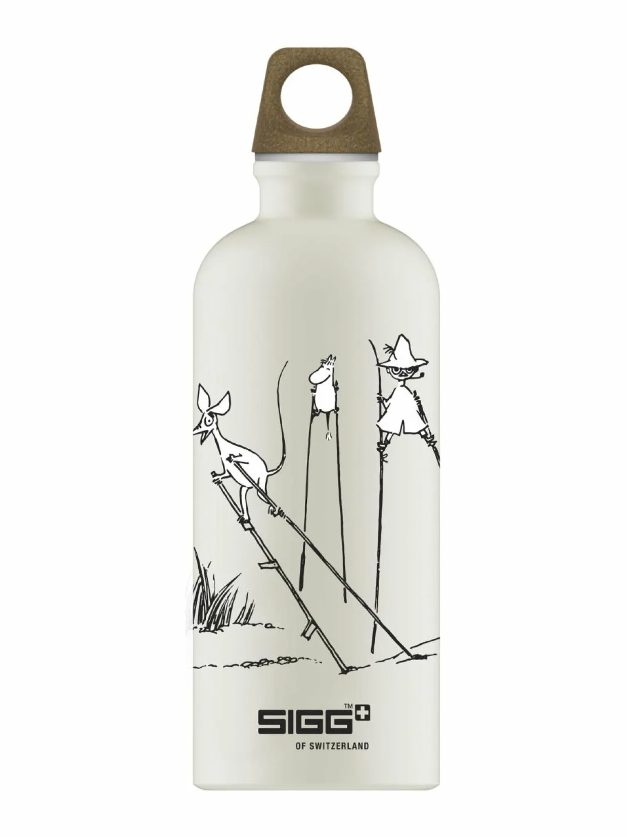 Tässä kauniissa pullossa on klassinen kuvitus Muumipeikosta, Nipsusta ja Nuuskamuikkusesta puujaloilla. Korkealaatuinen, kierrätettävä kierrätysalumiinipullo on erittäin kestävä ja kevyt.