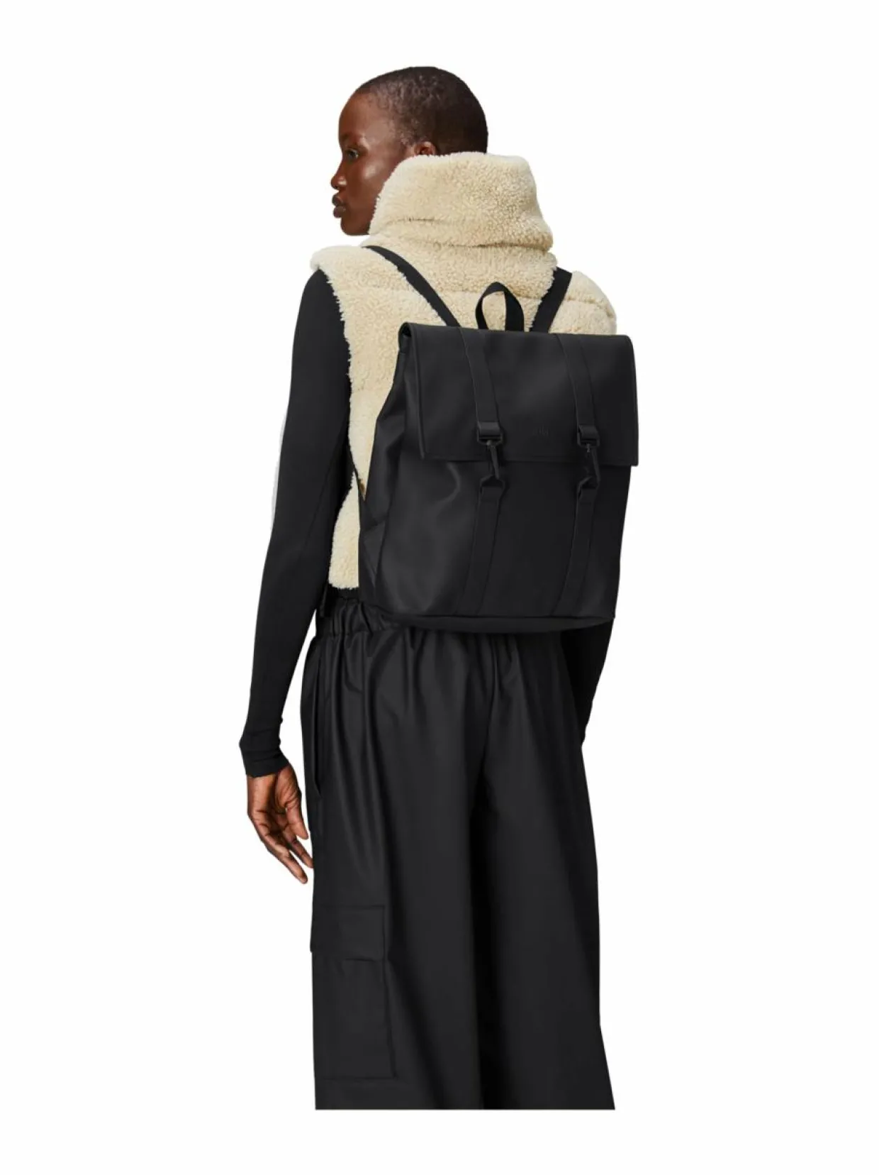 MSN Mini on pienempi versio MSN-repusta, joka muistuttaa klassista koulureppua. MSN Mini sopii kaupunkiystävälliseen pukeutumistyyliin. Minimalistisen siluetin kohokohtina ovat kaksinkertaiset kiristysremmit ja tunnusomaiset karabiinit. Tämä vedenpitävä reppu sisältää pääosion ja vetoketjullisen sisätaskun. Reppu on viimeistelty säädettävillä olkahihnoilla ja valmistettu Rainsin tunnusomaisesta PU-kankaasta, joka on suunniteltu kantokykyä, kestävyyttä ja pehmeää tuntumaa ajatellen.
