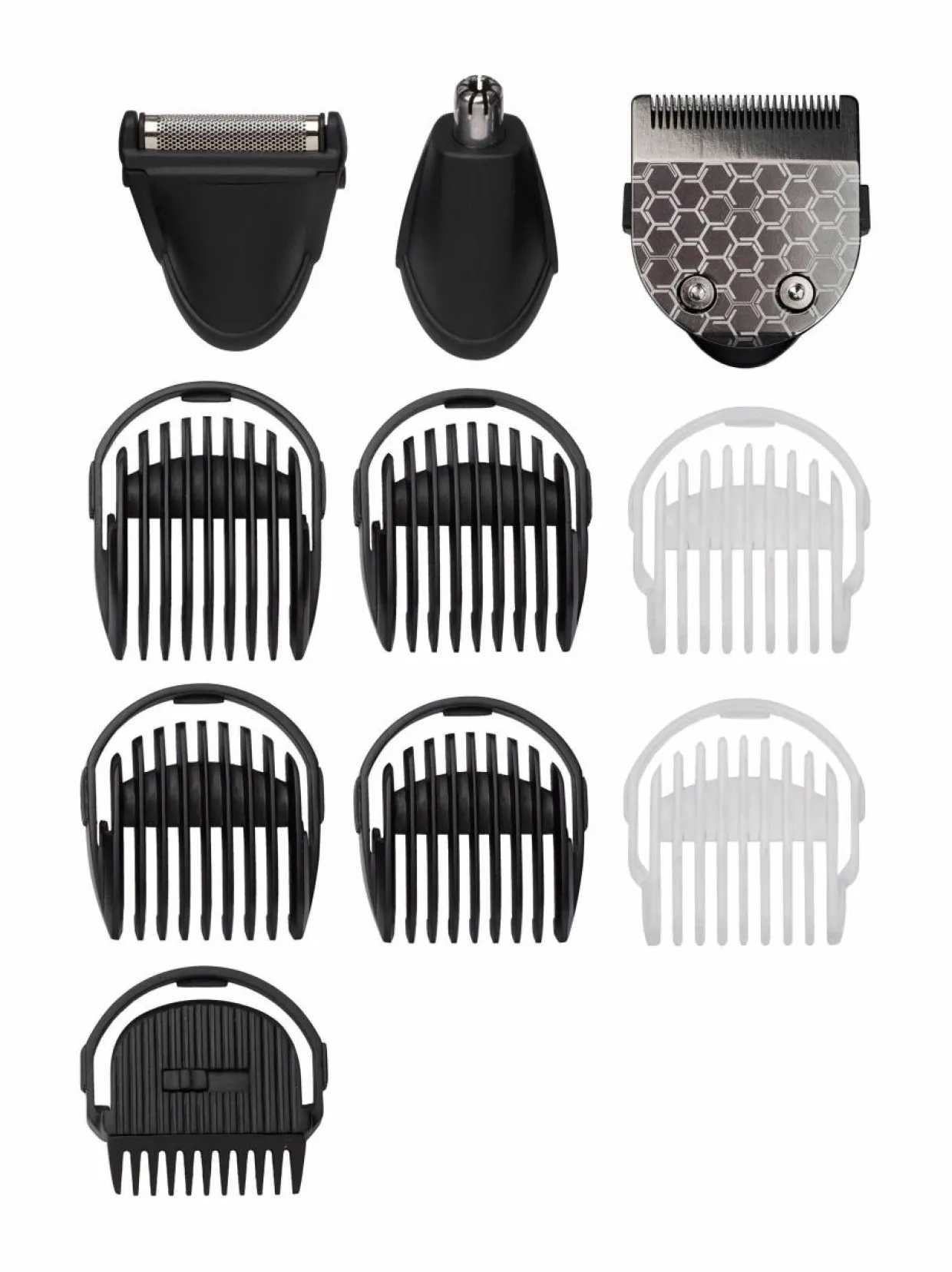 BaByliss MT728E 10-in-1 -trimmerillä siistit niin hiukset, parran kuin vartalonkin karvoituksen. Useat eri ajopäät mahdollistavat erinomaisen ajelun.