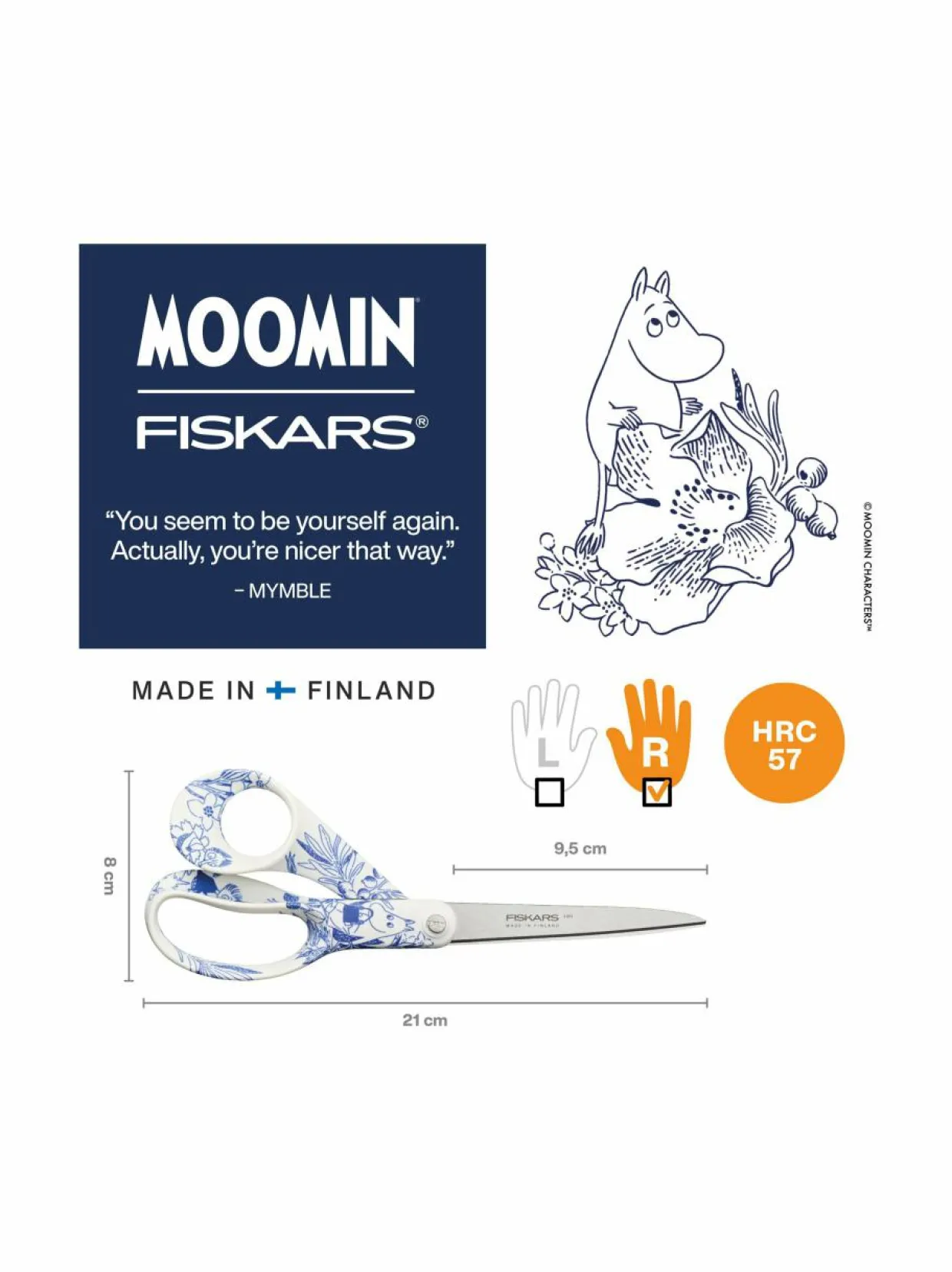 Vuonna 2025 tulee kuluneeksi 80 vuotta ensimmäisen muumitarinan ilmestymisestä. Juhli tätä merkkivuotta ihanilla Muumi-tuotteilla. Tove Janssonin elämä ja työ on muotoiltu Fiskarsin Muumi-saksien sinivalkoiseen sävyyn, herättäen eloon ihastuttavat ja veikeät Muumitarinat.
