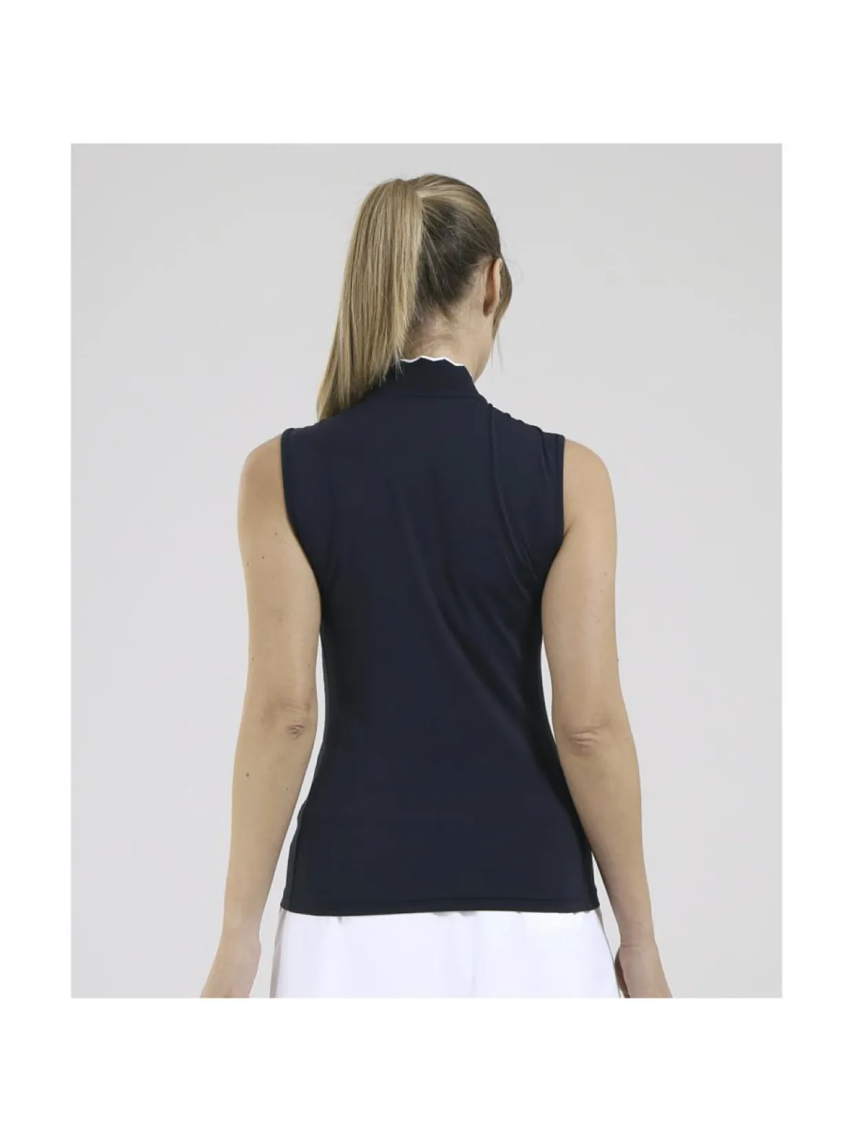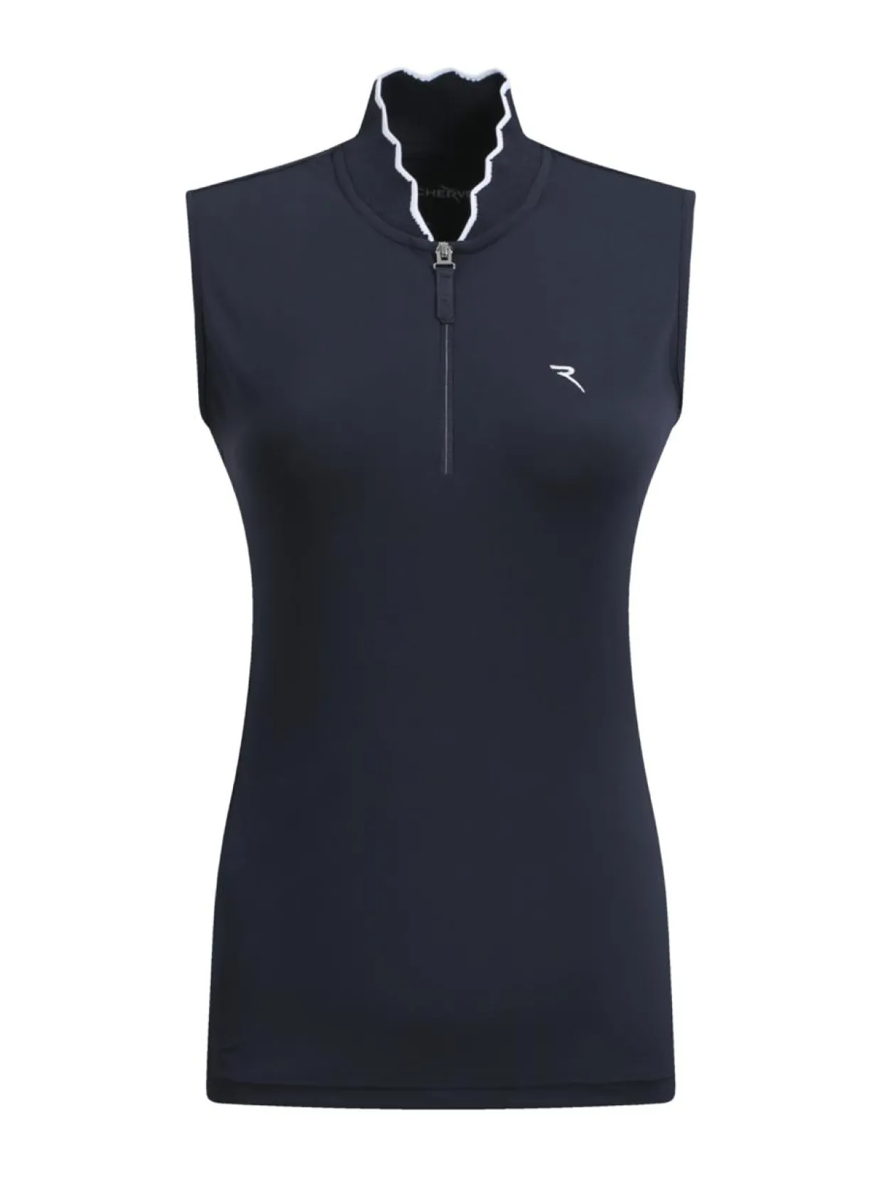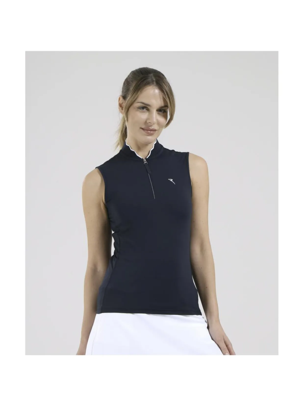 Naisten tyylikäs hihaton tummansininen paita. Paita sopii sekä urheiluun että vapaa-aikaan. Materiaali mahdollistaa todellisen mukavuuden sen joustavuuden takia. Materiaali suojaa ihoa auringolta ja kangas kuivuu nopeasti.