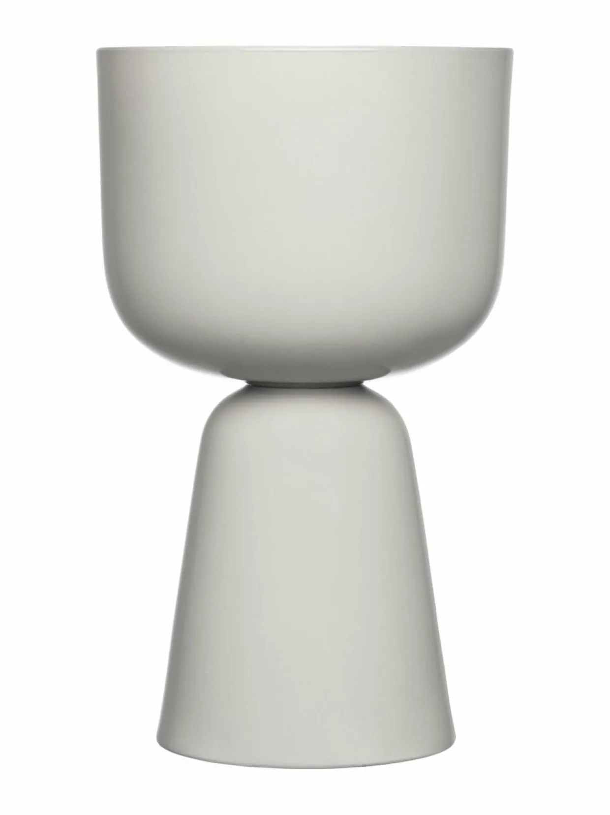 Isoille kasveille suunniteltu Nappula-ruukku on kuin veistos. Matti Klenellin suunnitteleman keramiikkaruukun voit asettaa suoraan lattialle tai tason päälle. Selkeälinjainen muotoilukieli tuo kasvit ja kukat hienosti esiin.