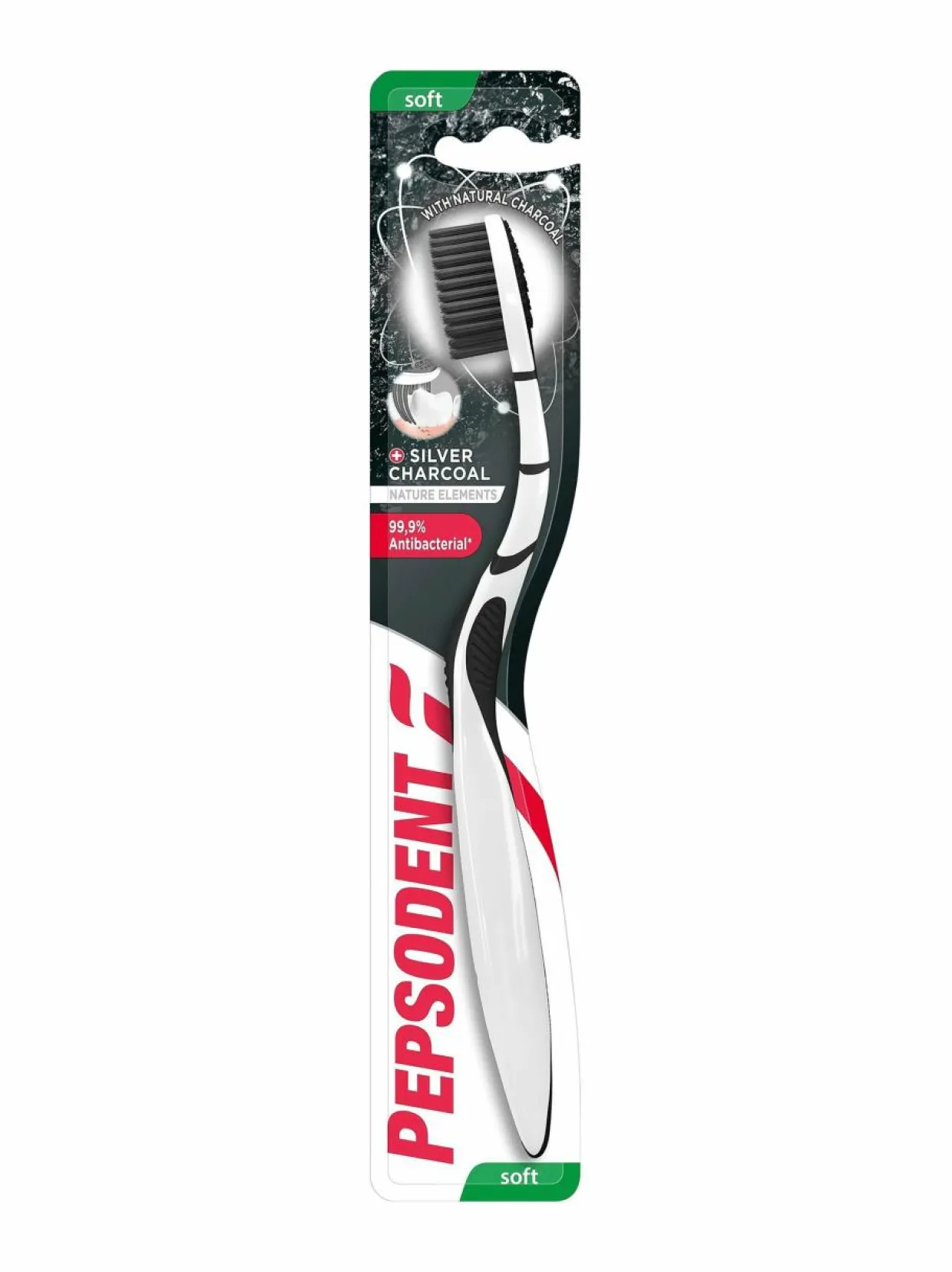 Pepsodent Nature Elements Silver Charcoal on hammasharja, jossa on 0,01 mm ohuet harjakset. Antibakteeriharjakset, joita on käsitelty hiili- ja hopeaioneilla, vähentävät bakteerien kasvua 99,9% *. Harjakset suojaavat jopa 3 kuukautta.