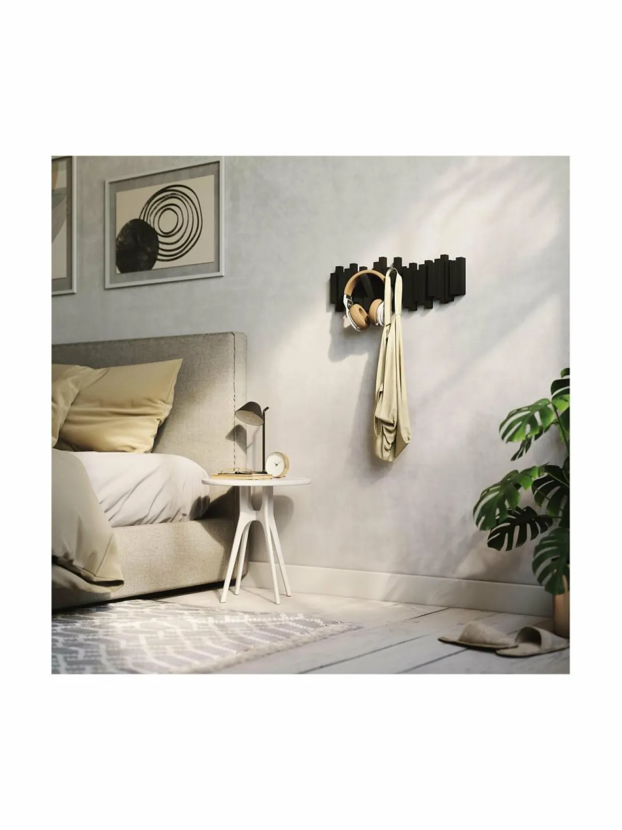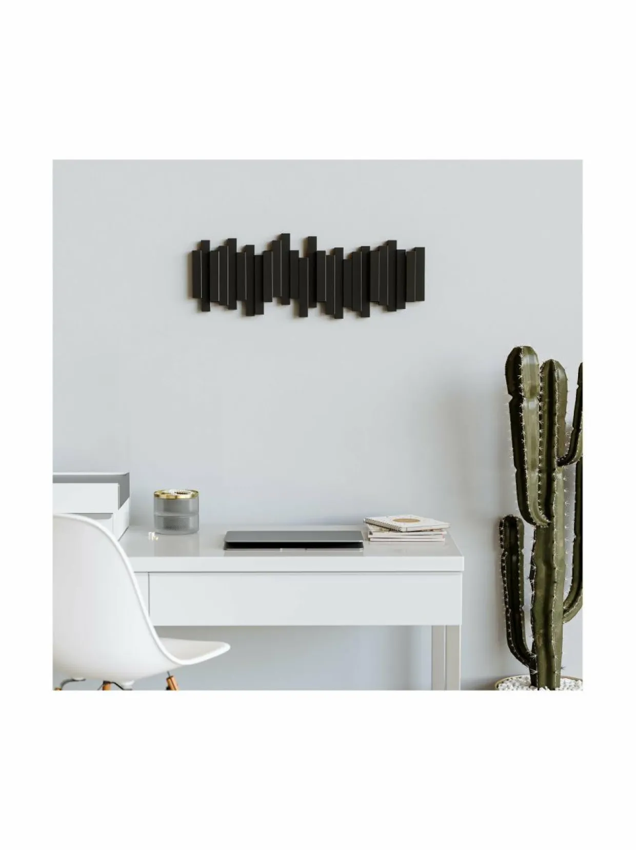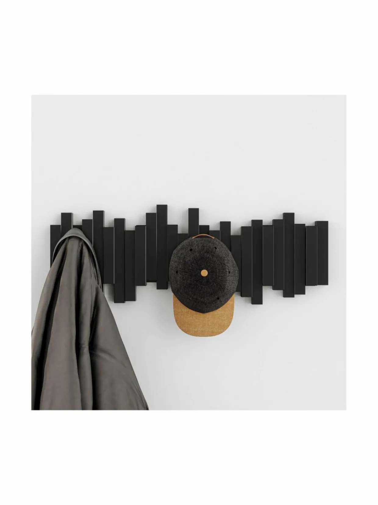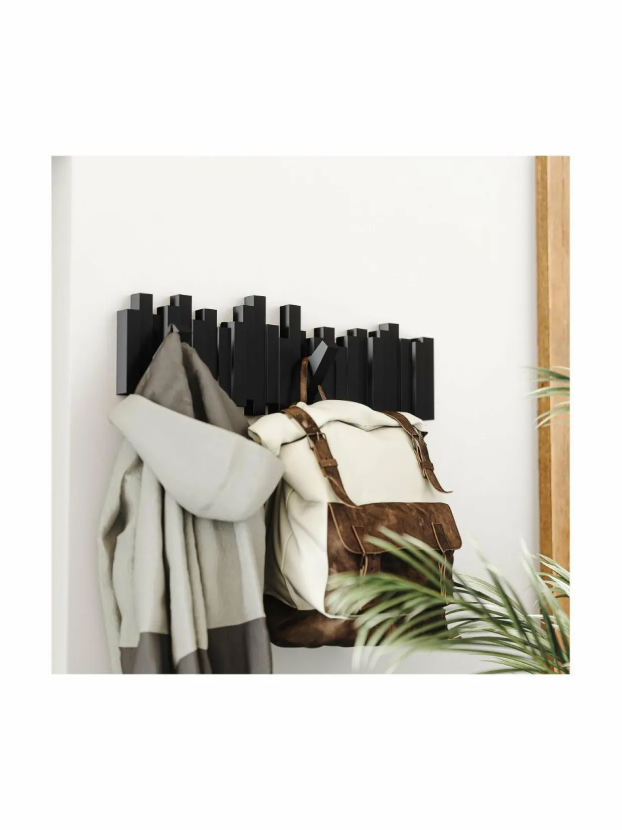 Kätevä naulakko toimii myös tyylikkäänä sisustuselementtinä. Muovisessa naulakossa on viisi koukkua, jotka voi tarpeen tullen kääntää alas tai nostaa ylös. Naulakon mitat ovat 49 x 18 x 3 cm.