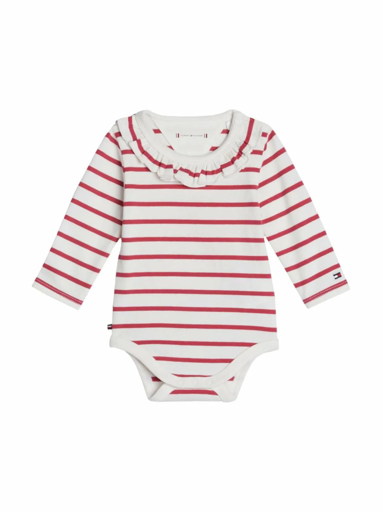 Materiaali93 % puuvilla, 7 % elastaani PesuohjeetKonepesu ValmistusmaaBangladesh VäriXI0 HERITAGE PINK Avainsanattommy hilfiger, raitabody vauvalle, raidallinen body, pitkähihainen body vauvalle,frillabody, röyhelöbody