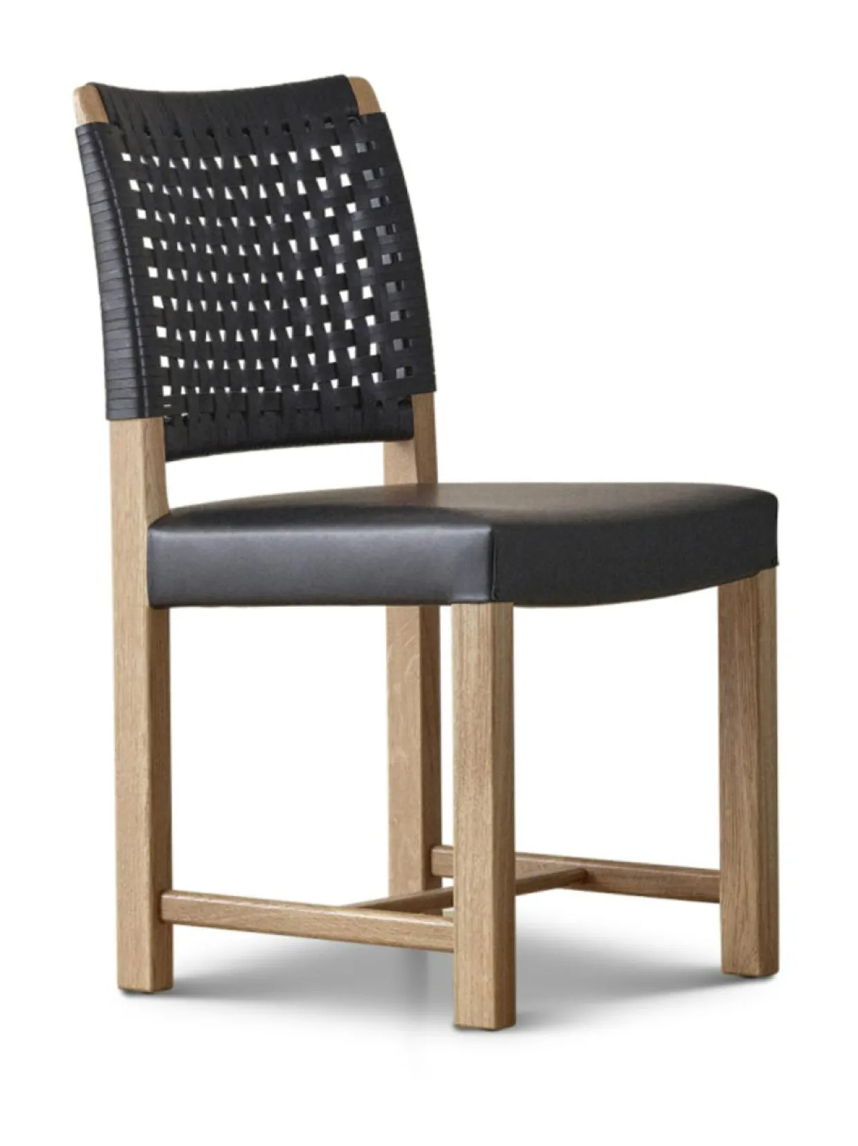 Massiivipuurunkoisen tuolin selkänojan taidokas nahkapunos on olennainen osa tuolin identiteettiä.