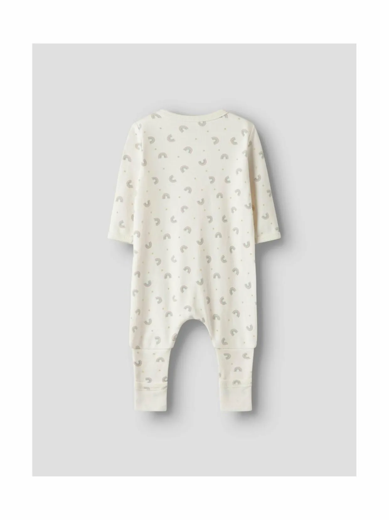 Pehmeä ja mukava yöasu, jossa on sateenkaarikuosi. Vetoketjullinen malli tekee pukemisesta helppoa. Materiaali on hengittävää ja kestävää puuvillaa, joka on hellävarainen herkkää ihoa vasten. 51 % materiaalista on luomutuotettua.