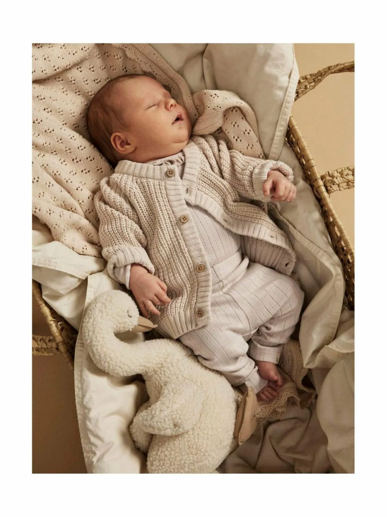 Lil’ Atelier -merkin pehmeä neuletakki on valmistettu 100 % luomupuuvillasta, joka on hellävarainen vauvan iholle. Pitkät hihat ja resorit varmistavat hyvän istuvuuden ja mukavuuden liikkuessa. Neule on helppo pukea ja riisua ja se on konepesun kestävä.