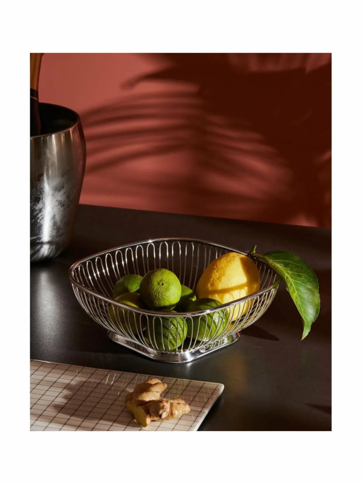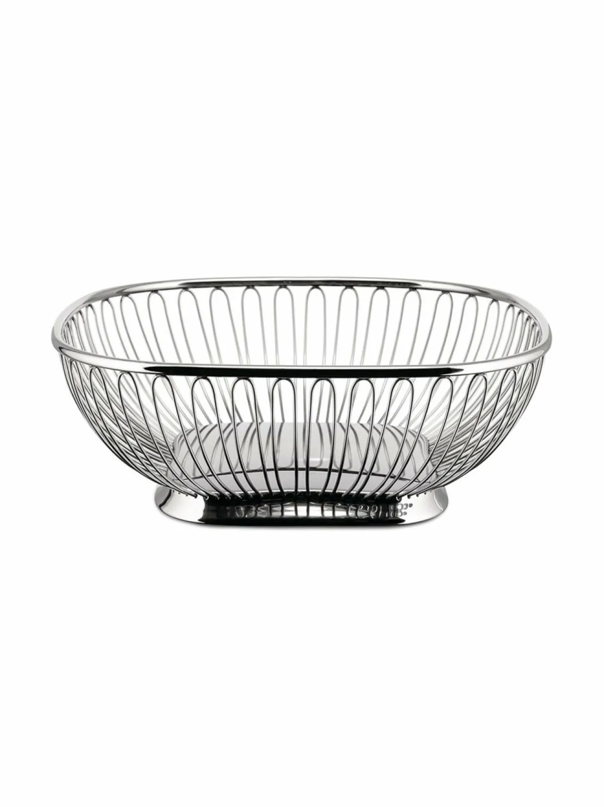 Teräksisessä 845-metallilankakorissa on peilikiillotettu pohja. Muotoilukokeilut taivutetulla teräslangalla olivat alusta asti ominta Alessia ja niistä syntyneet klassikot ovat edelleenkin supersuosittuja.