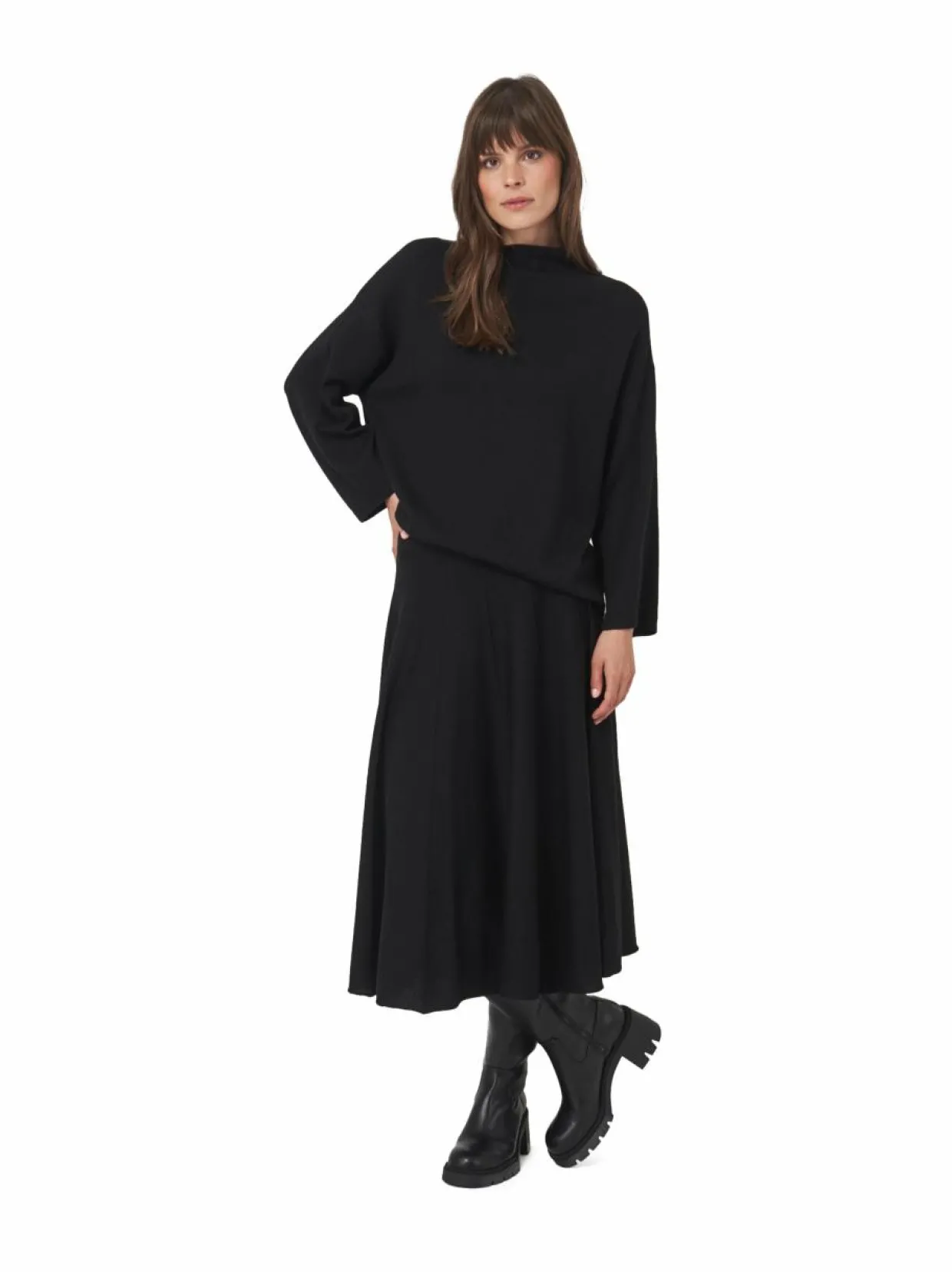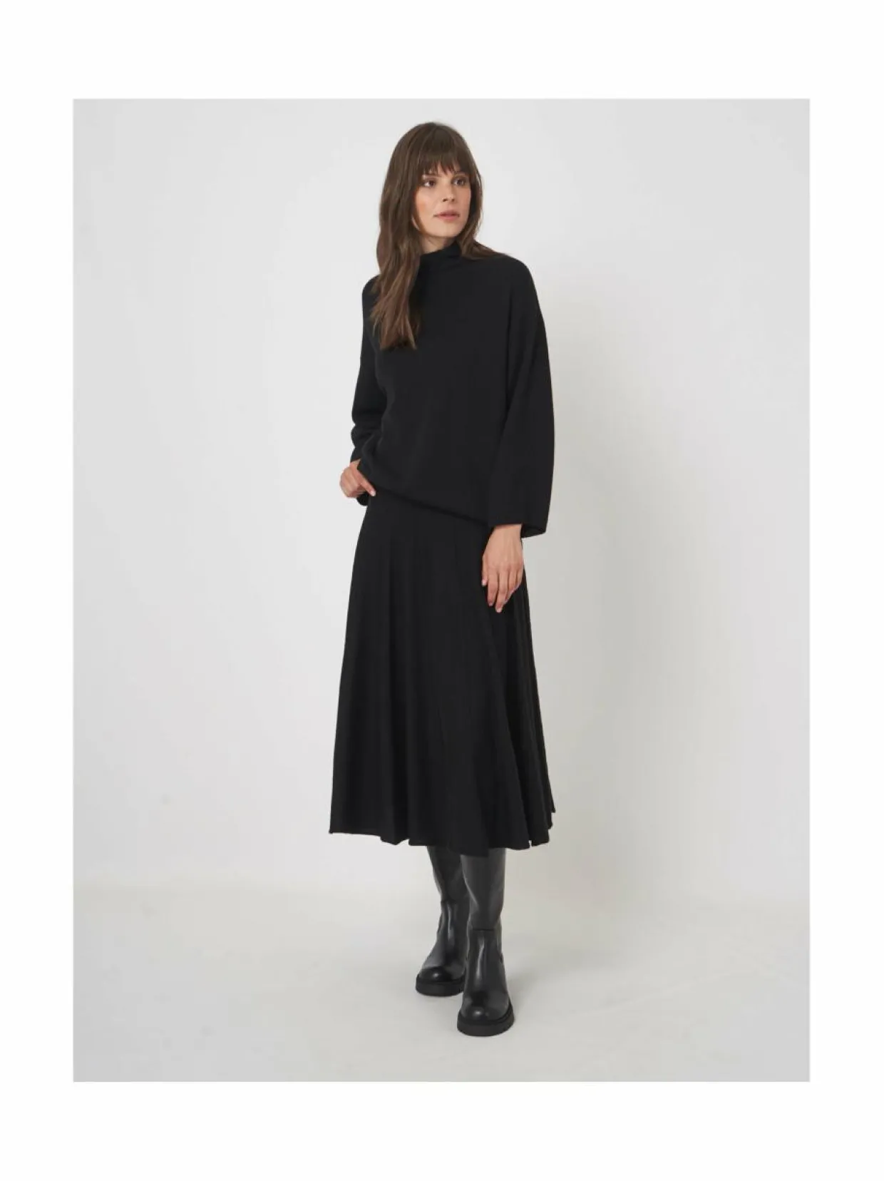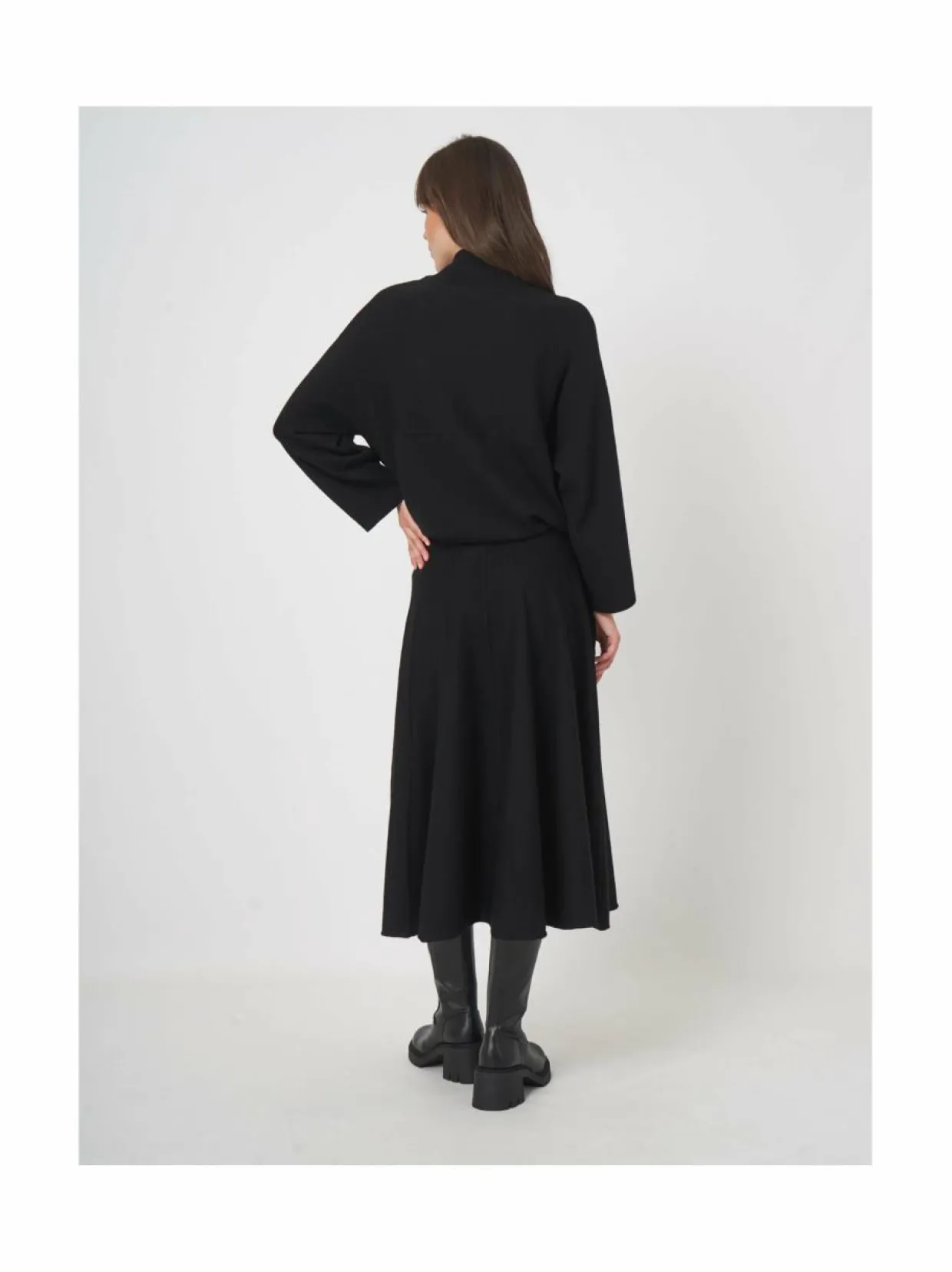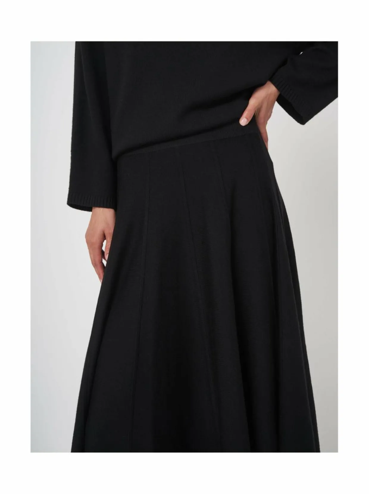 Elegantti A-linjainen neulehame Repeat vaatemerkiltä. Se on valmistettu pehmeästä merinovillasta, joka on tunnettu lämmittävyydestään ja hengittävyydestään. Hameen helma on kauniisti laskostettu. Monikäyttöinen neulehame sopii niin arkeen kuin juhliin.