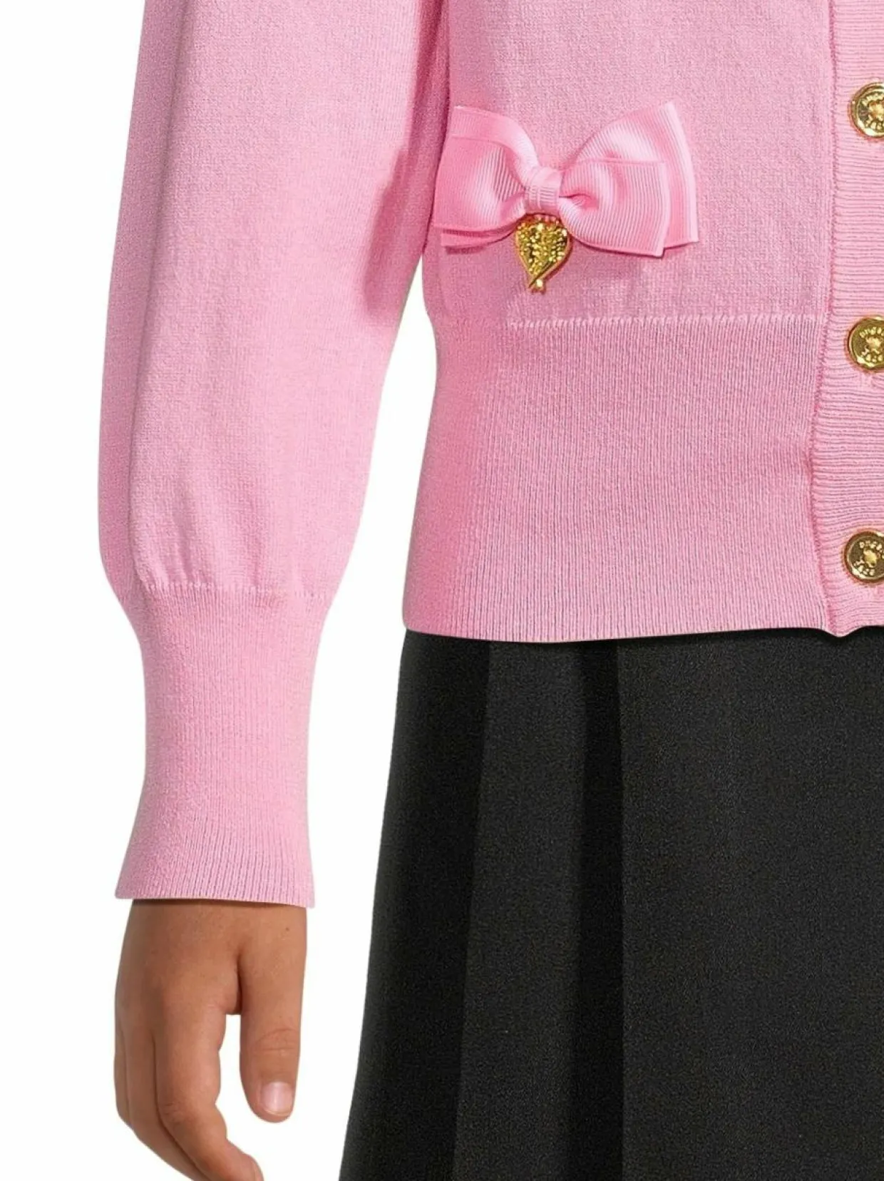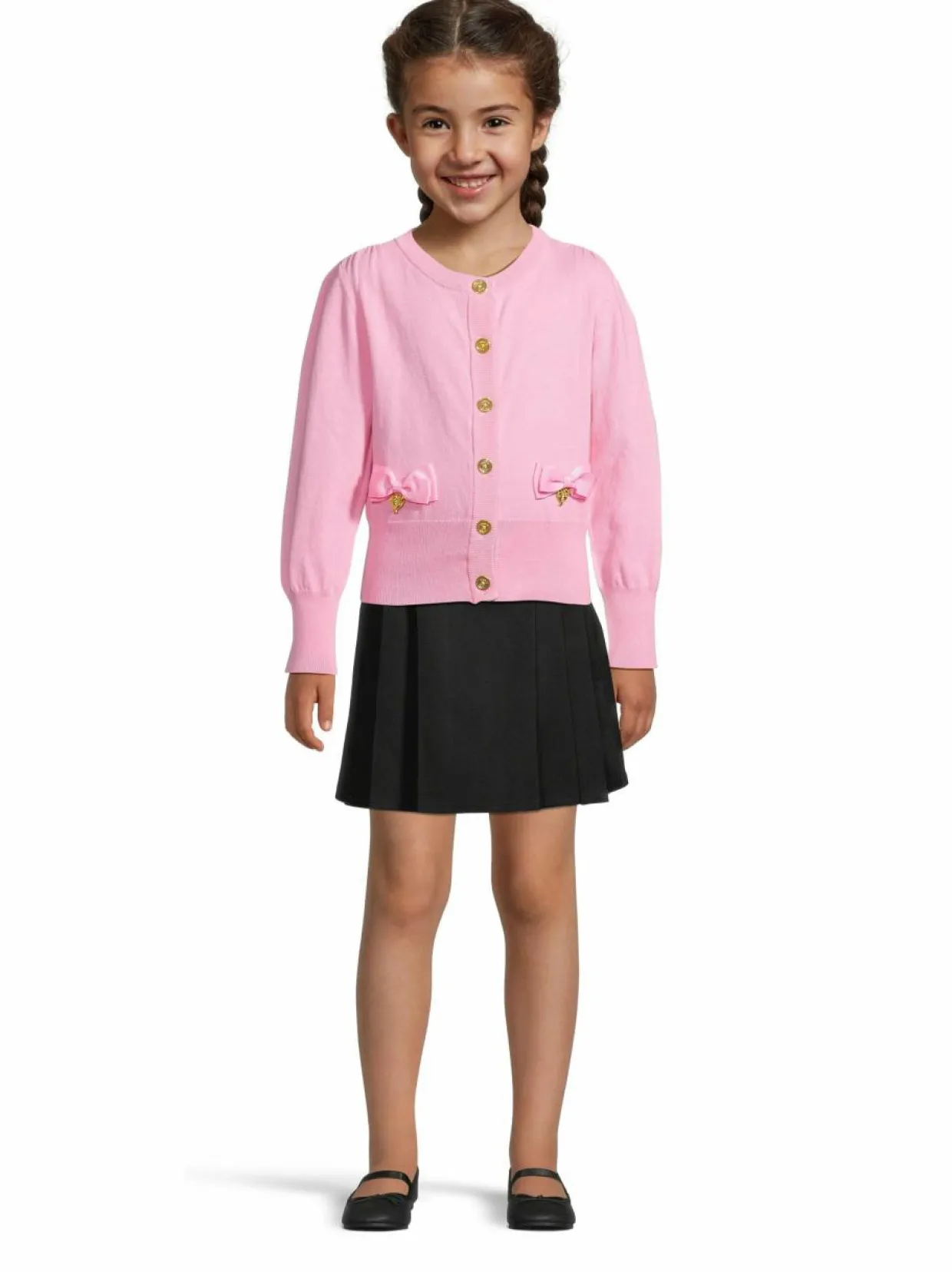 Tämä suloinen neuletakki on täydellinen lisä lapsesi vaatekaappiin. Pehmeä neulemateriaalista valmistettu neule on suunniteltu mukavuutta ja tyyliä silmällä pitäen. Neuleessa on klassinen siluetti, joka sopii monenlaisiin asuihin. Neuleen materiaali tuntuu miellyttävältä ihoa vasten ja on helppohoitoinen. Kauniit rusetti-yksityiskohdat viimeistelevät tyttömäisen tyylin.