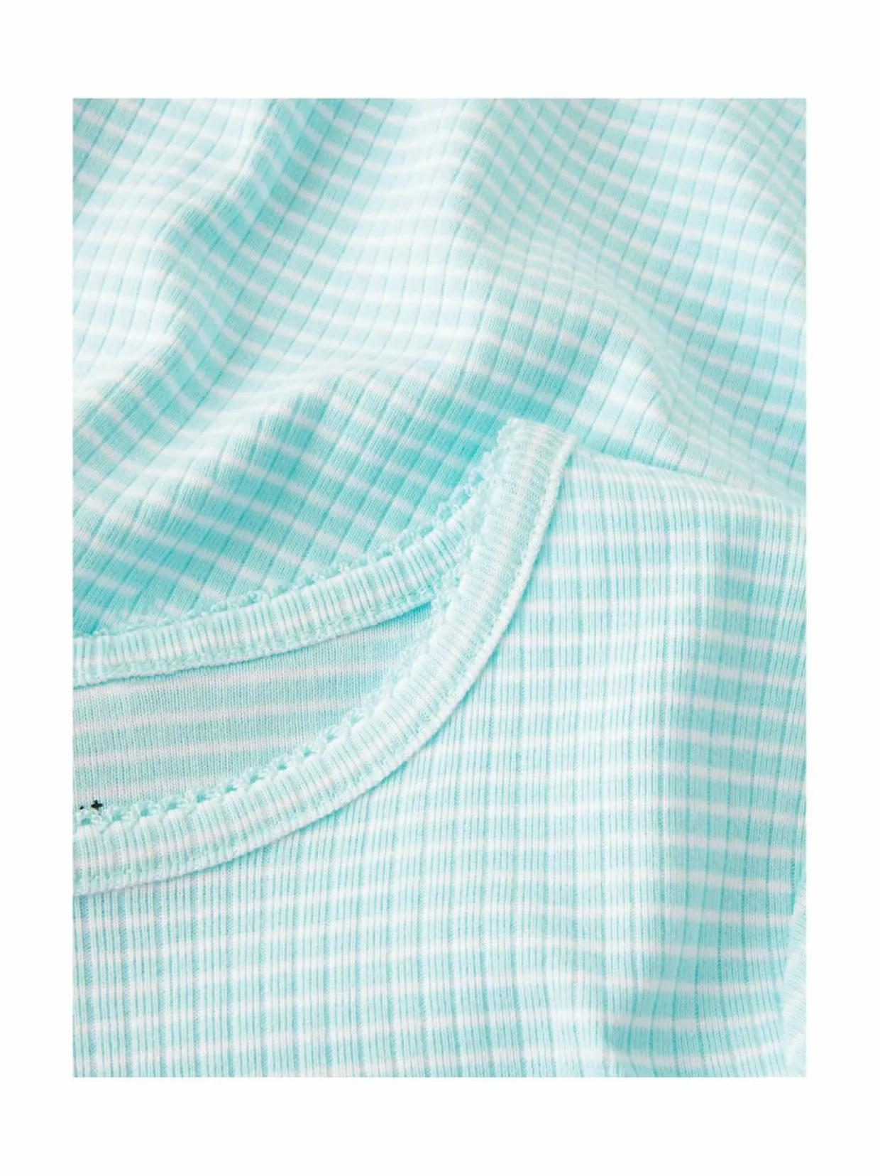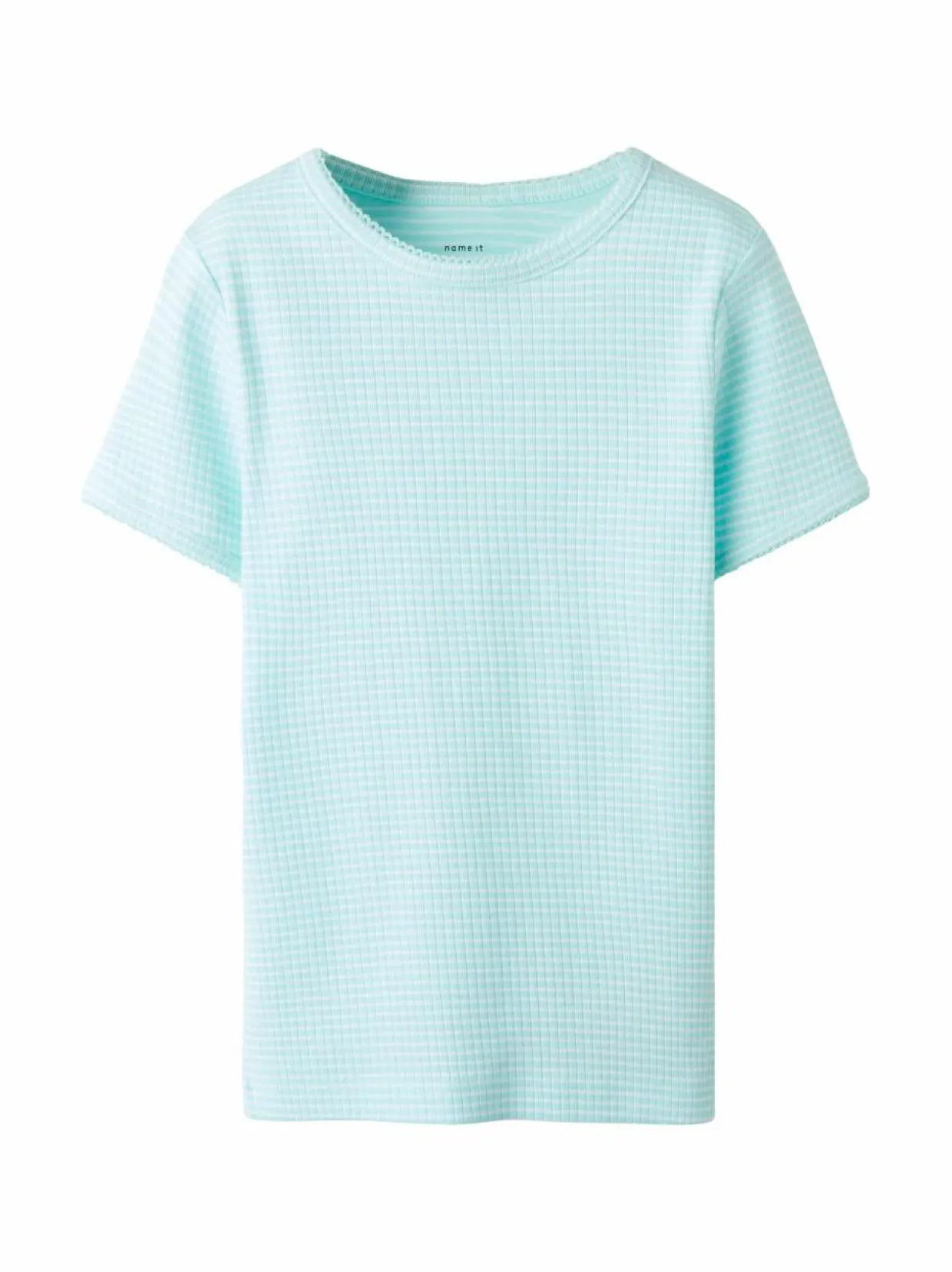 Ihastuttava Name It NkfFikate -trikoopaita on valmistettu pehmeästä ja hengittävästä materiaalista, jossa on ribbirakenne ja joka tuntuu mukavalta iholla. Paidassa on raitakuosi ja sen pääntien ja hihojen reunoilla on ohut pitsilinja.