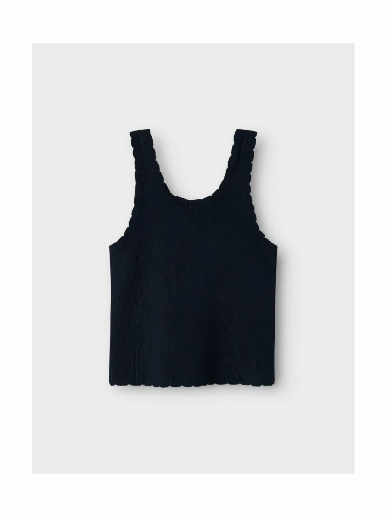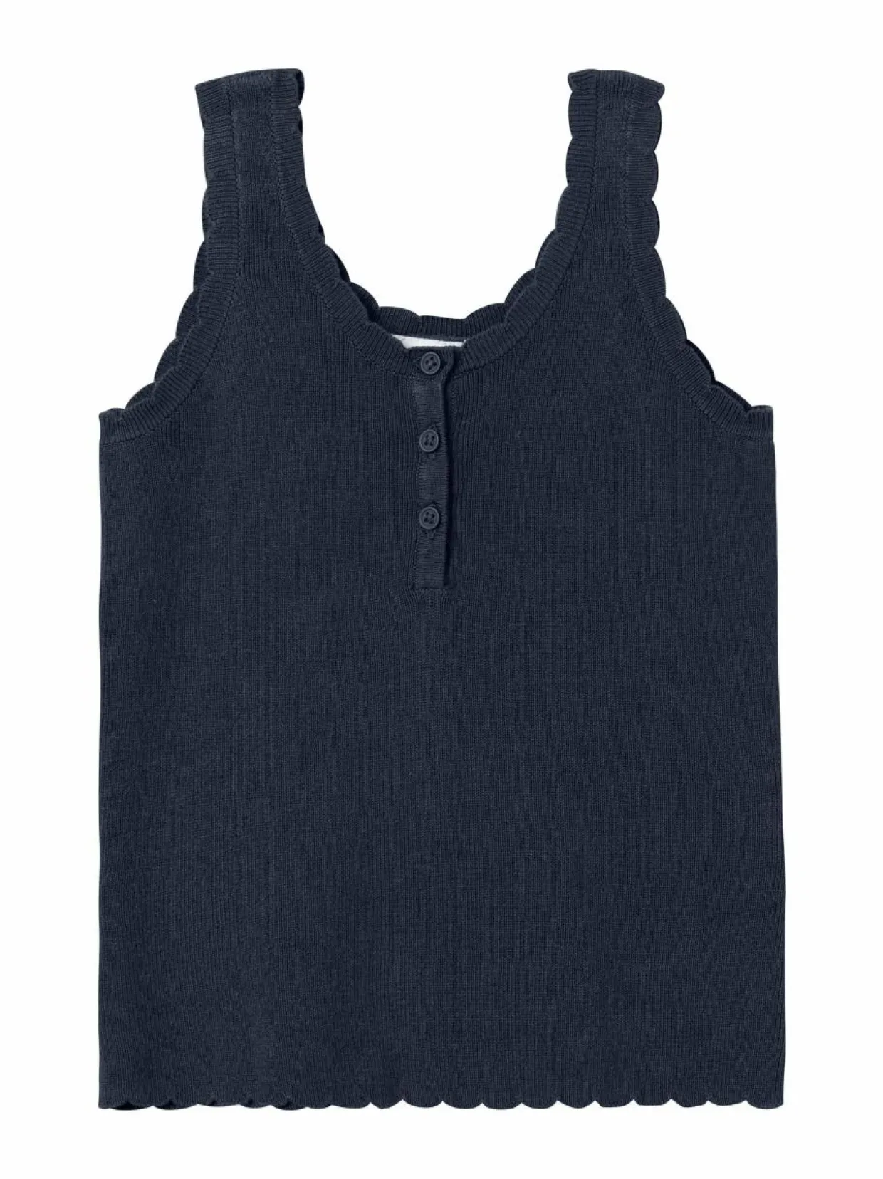 Pehmeä neuletoppi aaltoilevilla reunoilla name it tuotemerkiltä. Topin edessä on osittainen napitus. Vaate on suunniteltu normaaliin istuvuuteen ja valmistettu Lenzing Ecovero -viskoosisekoitteesta.