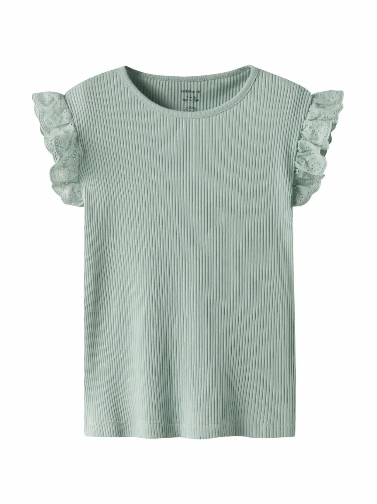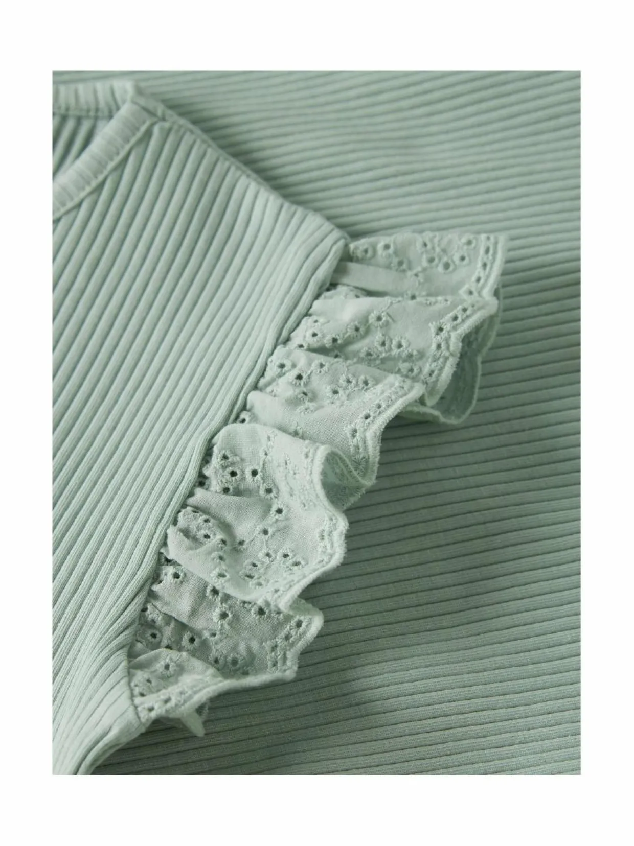 Joustava ja pehmeä lyhythihainen ribbipaita, jossa on suloiset pitsihihat. Valmistettu hengittävästä ja luomupuuvillasta. Ripaus elastaania lisää käyttömukavuutta.