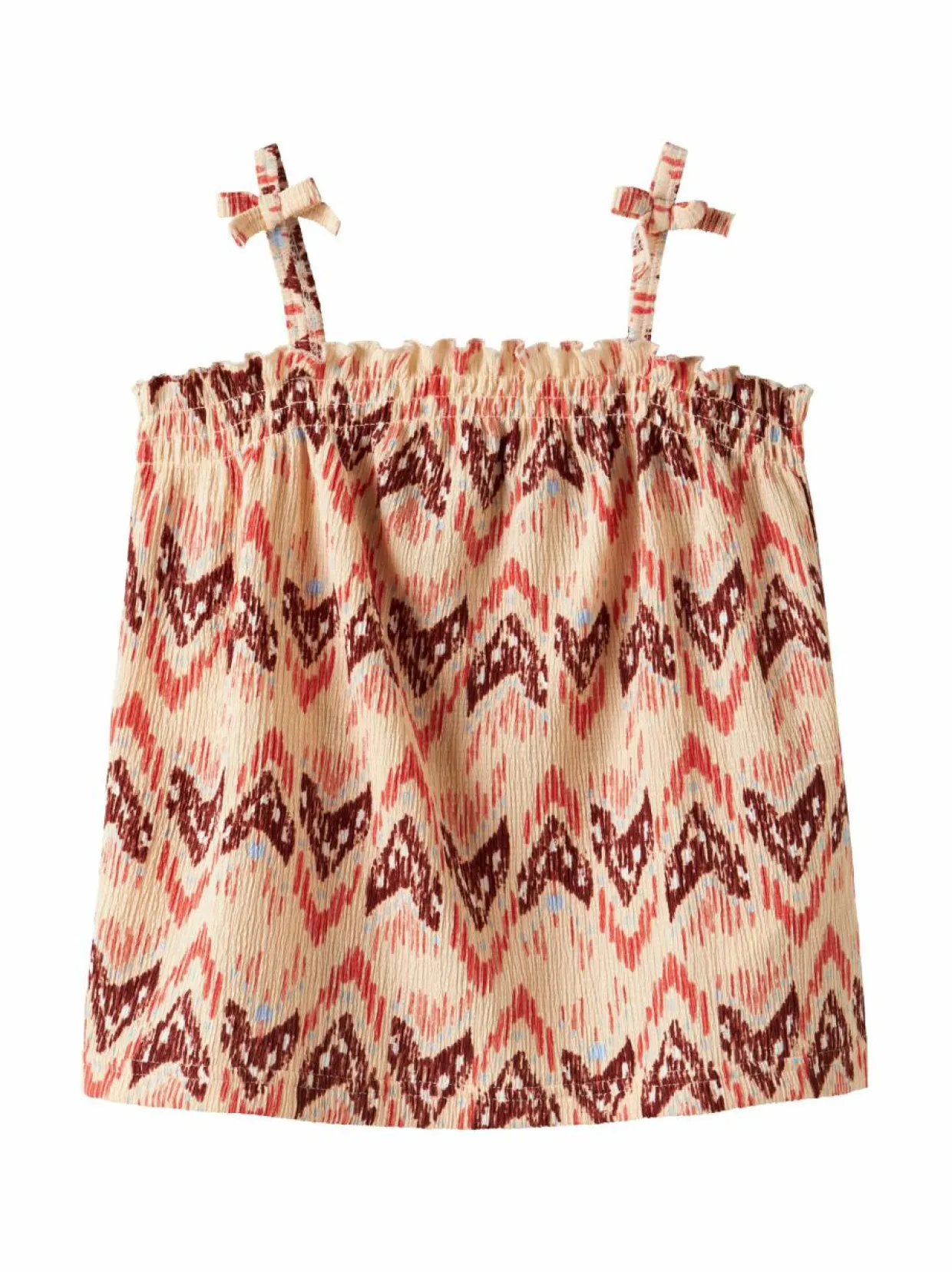 Kevyt ja joustava toppi, jossa on ohuet olkaimet ja yksinkertainen muotoilu. Toppi on valmistettu joustavasta polyesterin ja elastaanin sekoituksesta, mikä takaa miellyttävän tunteen ihoa vasten ja hyvän liikkuvuuden. Polyesteri tuo toppiin kestävyyttä ja auttaa sitä säilyttämään muotonsa, kun taas elastaani antaa sille lisäjoustoa. Topin ilmava ja kevyt materiaali tekee siitä täydellisen lämpimiin päiviin.