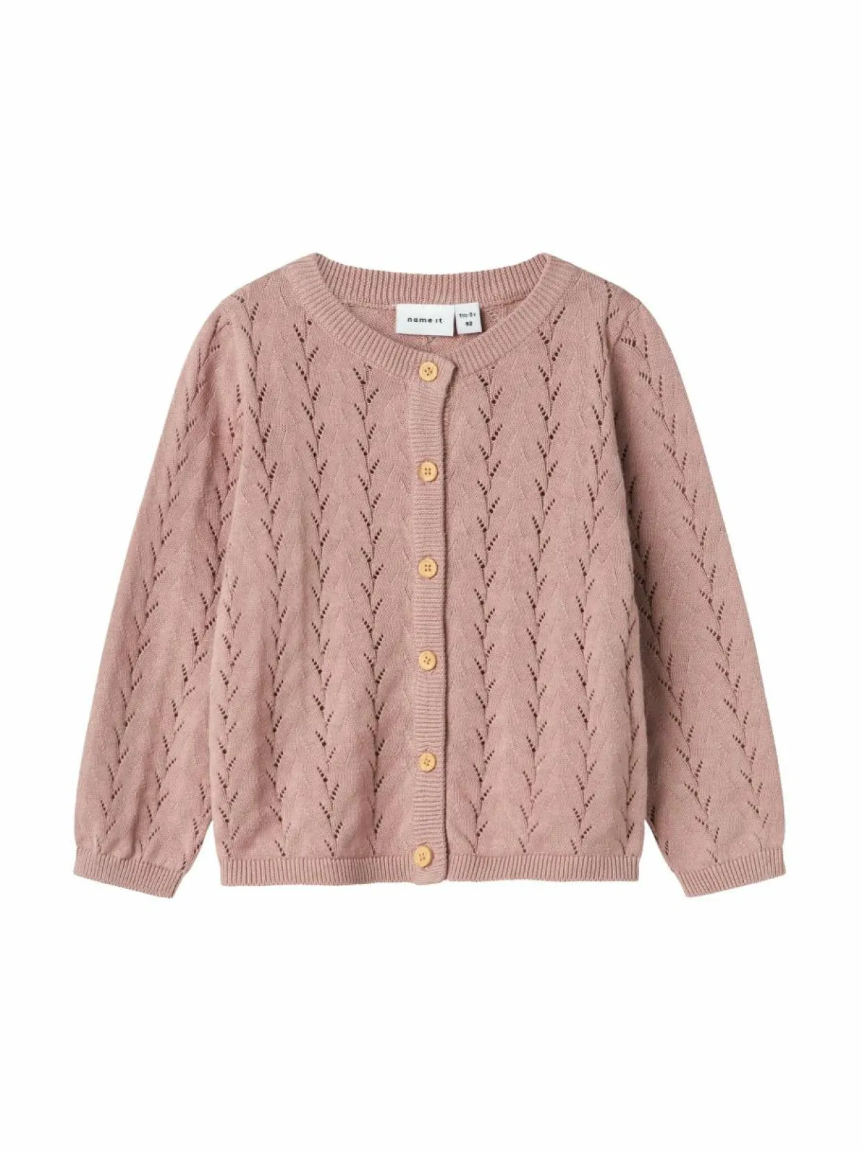 Name It -merkin neuletakki on kaunis ja pehmeä valinta lapsesi arkipukeutumiseen. Neuletakki on valmistettu 100 % puuvillasta, joka tuntuu miellyttävältä ja hengittää hyvin. Tyylikkäät yksityiskohdat, kuten pitsineulekuvio ja puiset napit, antavat sille klassisen ilmeen.