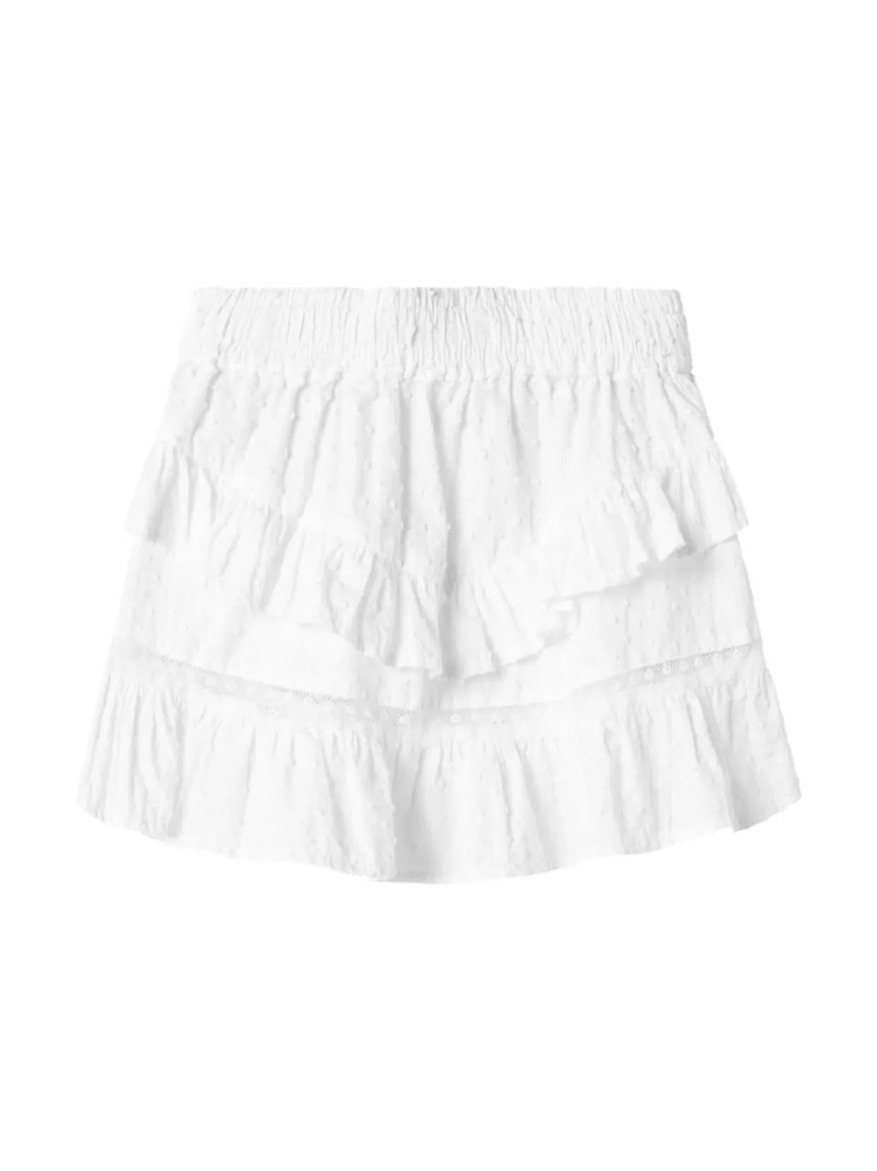 Name It -merkin NmfFatidias-hame on valmistettu pehmeästä puuvillasta ja siinä on ihastuttavat kerrosröyhelöt. Hameessa on joustava vyötärö, joka tekee siitä mukavan käyttää. Hame sopii täydellisesti kesäpäiville ja se on helppo yhdistää muihin vaatteisiin. Puuvilla on luonnollinen materiaali, joka hengittää hyvin ja on miellyttävä iholle.