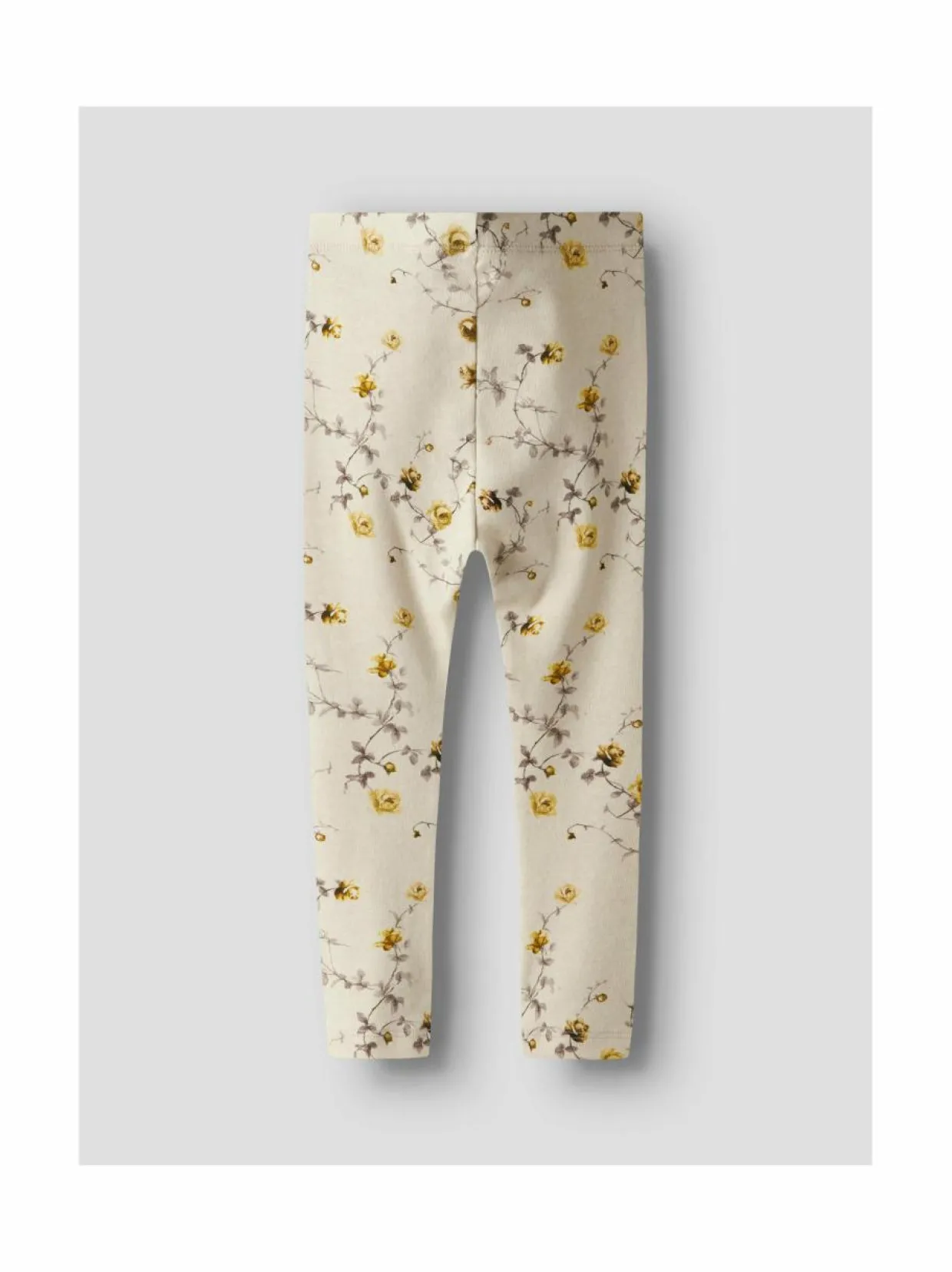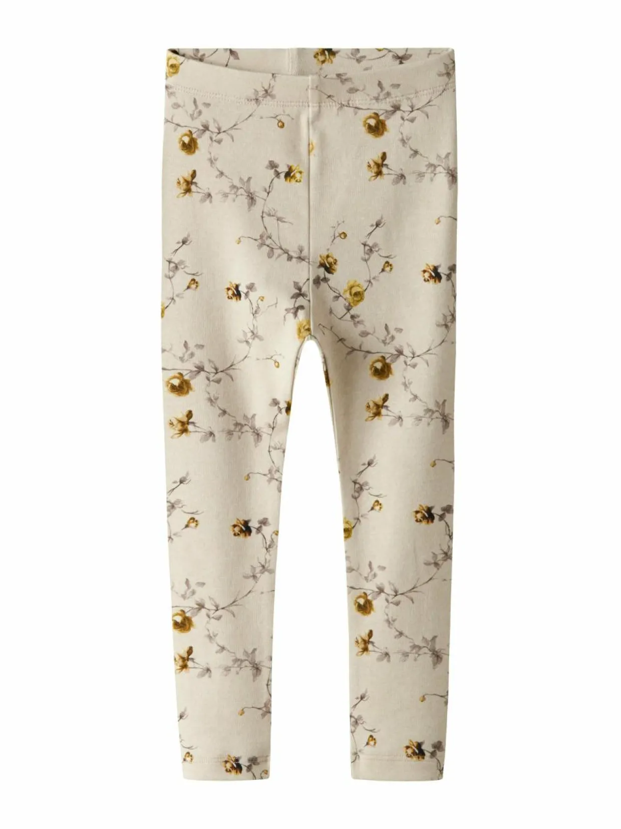 Pehmeät leggingsit name it vaatemerkiltä. Housujen vyötärö on joustava. Kankaassa on kokopeittävä kuosi. Materiaalina on käytetty erittäin miellyttävän tuntuista luomupuuvillan ja Tencel-lyocellin yhdistelmää, joka sisältää myös elastaania joustavuutta varten.