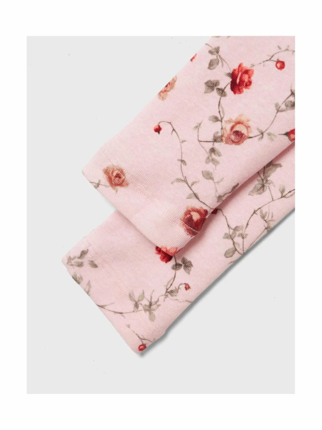 Pehmeät leggingsit name it vaatemerkiltä. Housujen vyötärö on joustava. Kankaassa on kokopeittävä kuosi. Materiaalina on käytetty erittäin miellyttävän tuntuista luomupuuvillan ja Tencel-lyocellin yhdistelmää, joka sisältää myös elastaania joustavuutta varten.