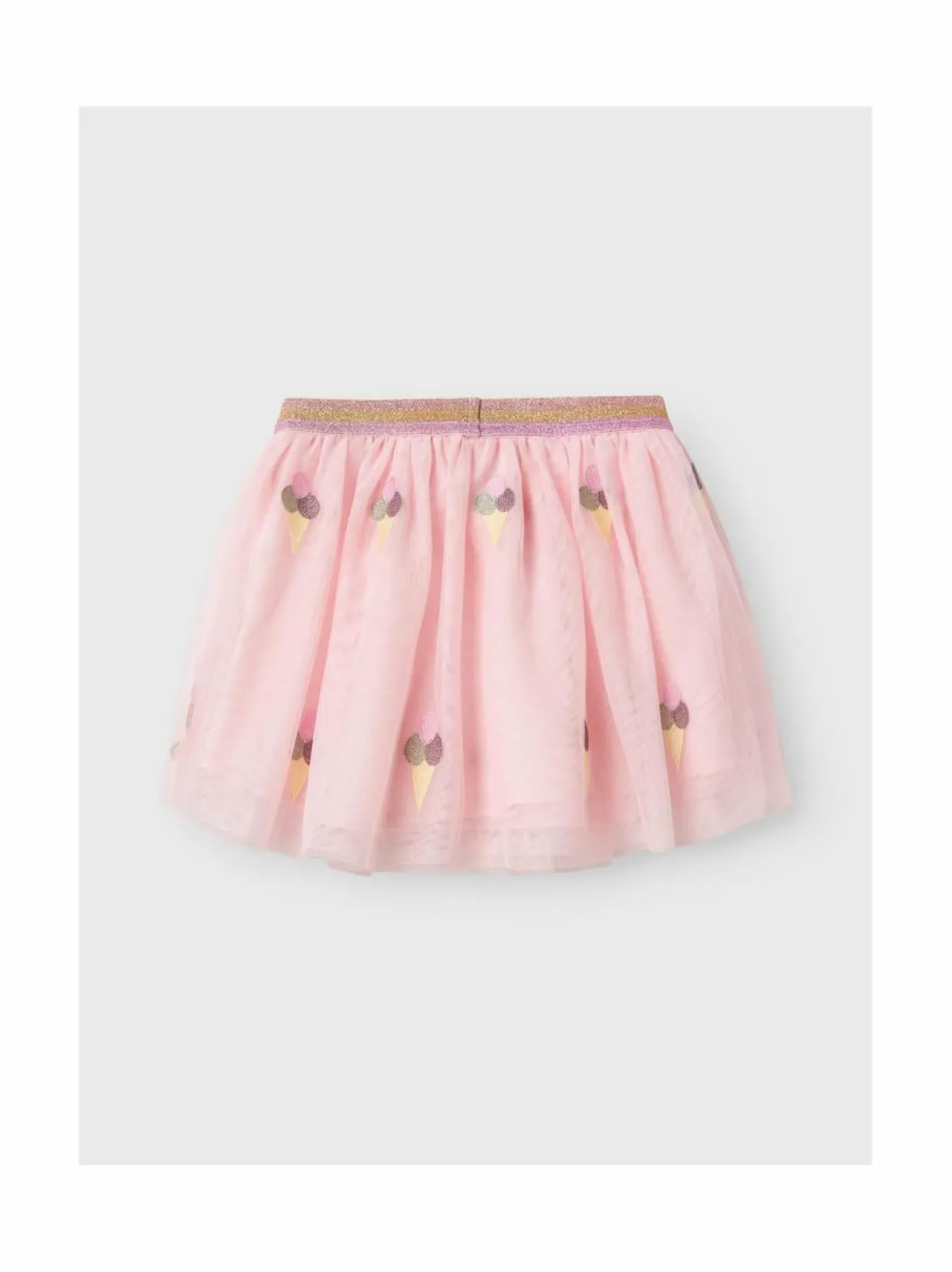 Tämä ihastuttava tyllihame sopii niin arkipukeutumiseen kuin juhliin ja siinä on kimaltava sekä joustava vyötärönauha. Hameessa on herkulliset jäätelökuvioinnit kerroksellisessa helmassa, joka tuo iloa ja väriä asuun. Tämä tyllihame on täydellinen valinta jokapäiväiseen käyttöön tai juhlaan, joka tekee siitä monikäyttöisen.