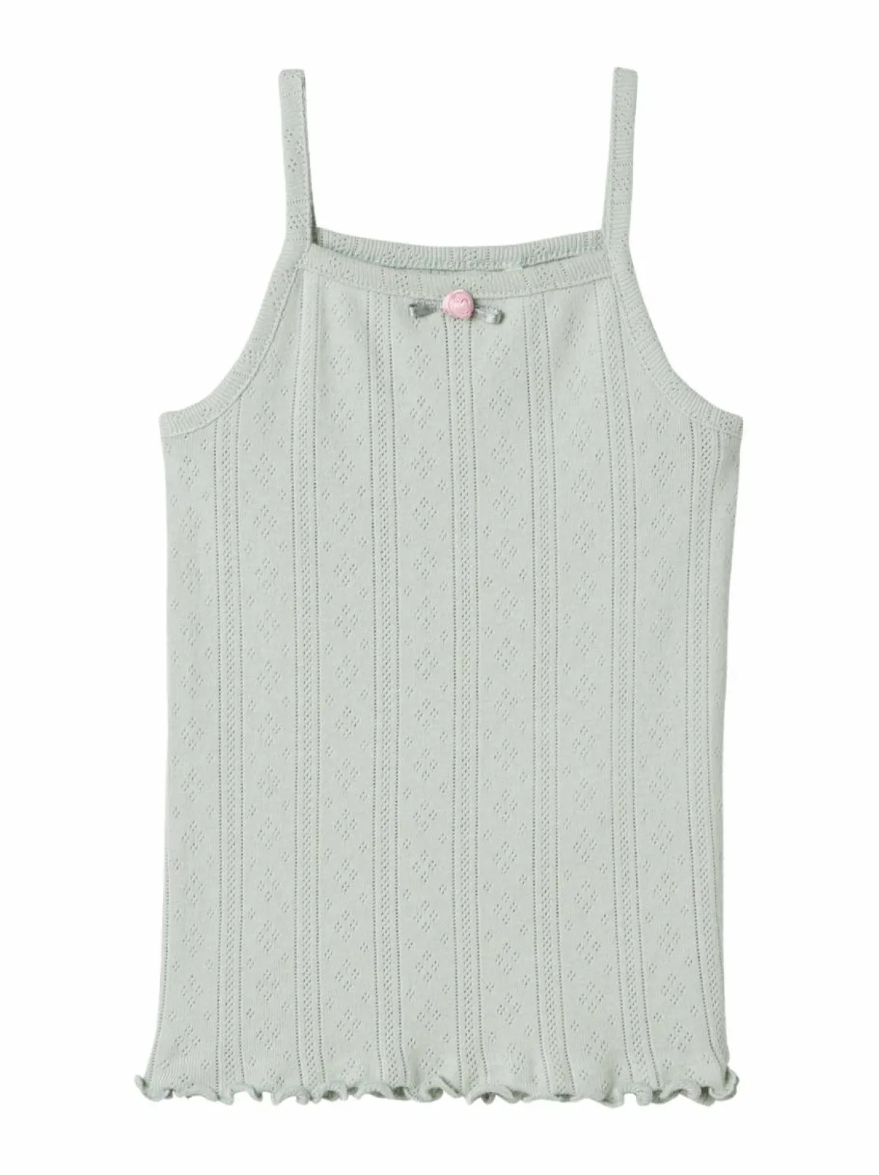 Materiaali100 % puuvilla Hoito-ohjeetKonepesu. Pese samanväristen kanssa ja silitä nurinpäin. Ei saa valkaista. Ei rumpukuivausta. Tasokuivaus. Silitys enintään 150°C. Ei kemiallista pesua. VäriAQUA GRAY Avainsanattoppi, hihaton paita, olkain toppi, puuvillapaita, NAME IT, lastenvaatteet