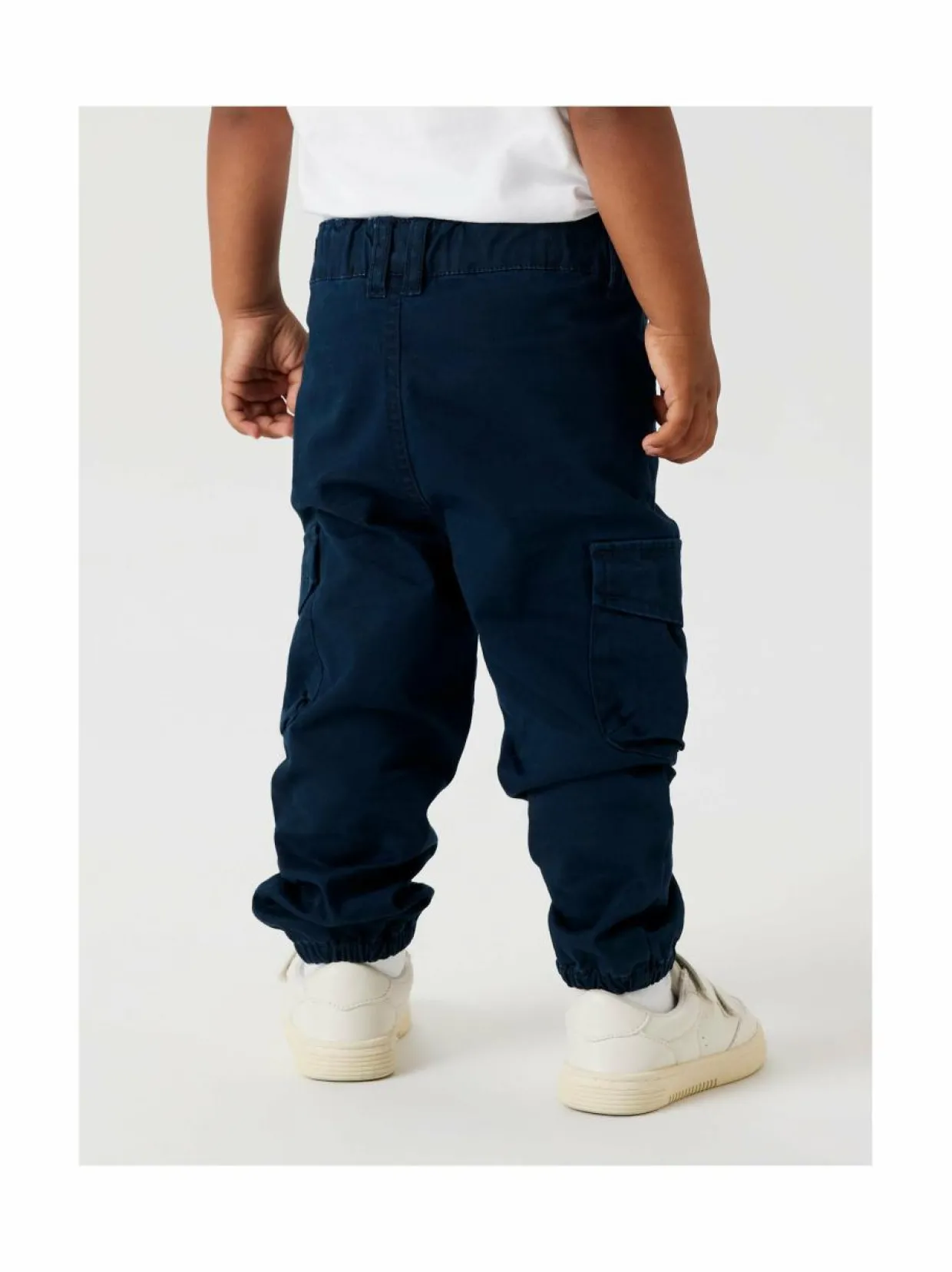 Name It -merkin cargohousut sopivat hyvin arkeen ja ulkoiluun. Housut on valmistettu pehmeästä puuvillakankaasta, jossa on hieman elastaania tuomaan joustavuutta ja liikkumavapautta. Cargotyyliin kuuluvat reilut reisitaskut ovat kätevät pienten aarteiden säilytykseen, ja joustava vyötärö sekä lahkeensuut varmistavat hyvän istuvuuden.