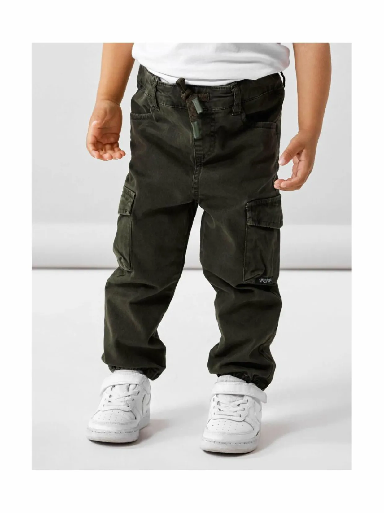 Lasten cargomalliset housut, jossa on useat taskut ja säädettävä vyötärö. Materiaali on joustavaa puuvillasekoitetta.