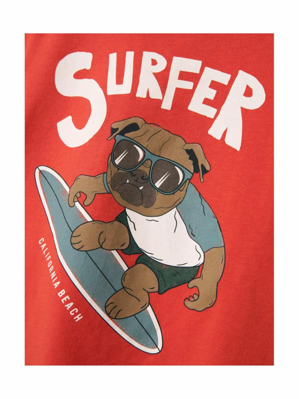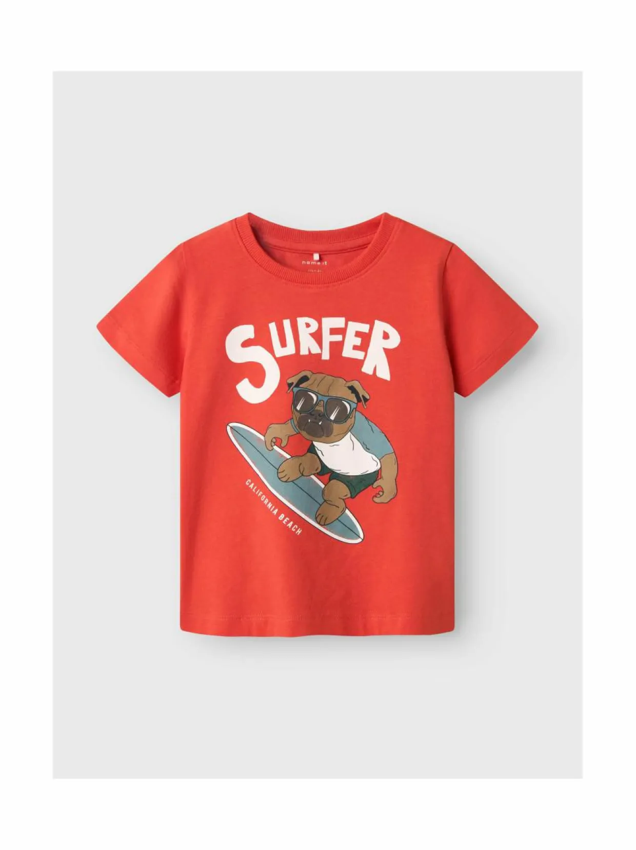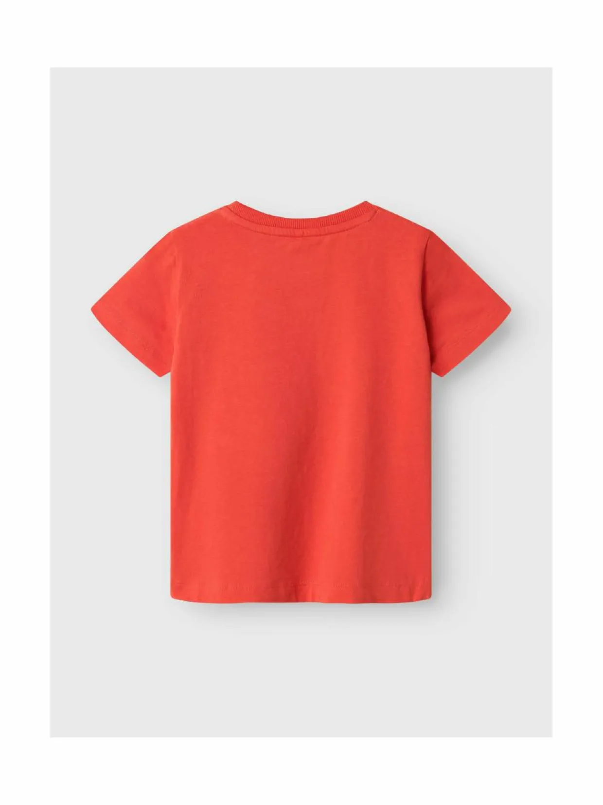Suoralinjainen t-paita printtikuviolla. Name it merkkinen trikoopaita on valmistettu pehmeästä ja joustavasta puuvillasta. Tuote sisältää vähintään 50 % luomupuuvillaa.