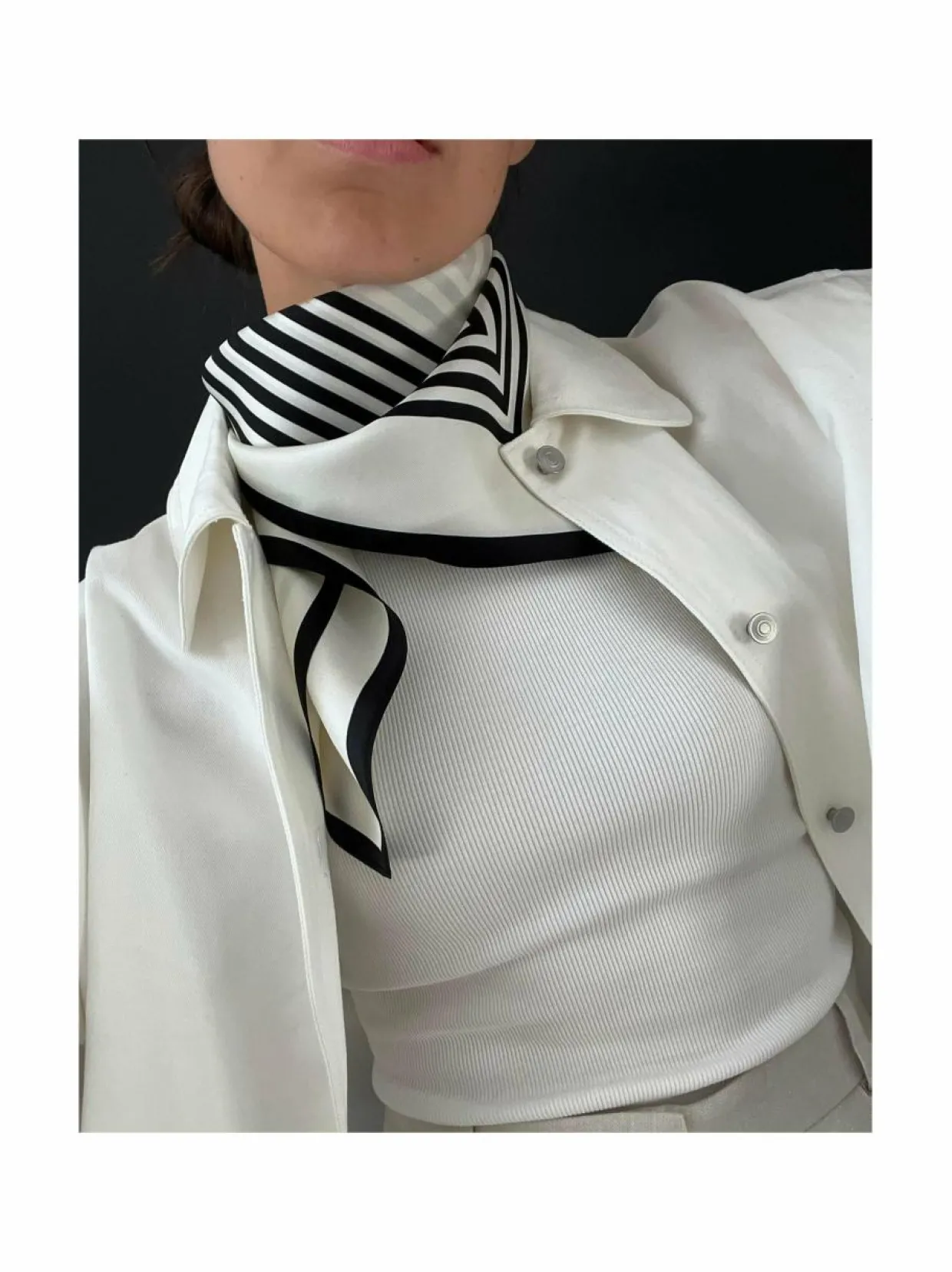 Tuotenumero170255453 Materiaali100 % silkki Hoito-ohjeetVain kemiallinen pesu. Höyrytä tai silitä varovasti ja miedolla lämmöllä. PesuohjeetKemiallinen pesu Kokotiedot65 x 65 cm VäriCREAM Koko65 x 65 cm AvainsanatLescarf, huivi, kaulahuivi, silkkihuivi, silkki, kaulaliina, silkkiasuste
