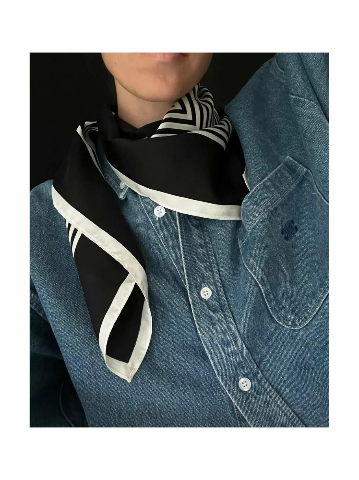 Tuotenumero170256153 Materiaali100 % silkki Hoito-ohjeetVain kemiallinen pesu. Höyrytä tai silitä varovasti ja miedolla lämmöllä. PesuohjeetKemiallinen pesu Kokotiedot90 x 90 cm VäriBLACK & CREAM Koko90 x 90 cm AvainsanatLescarf, huivi, kaulahuivi, silkkihuivi, silkki, kaulaliina, silkkiasuste