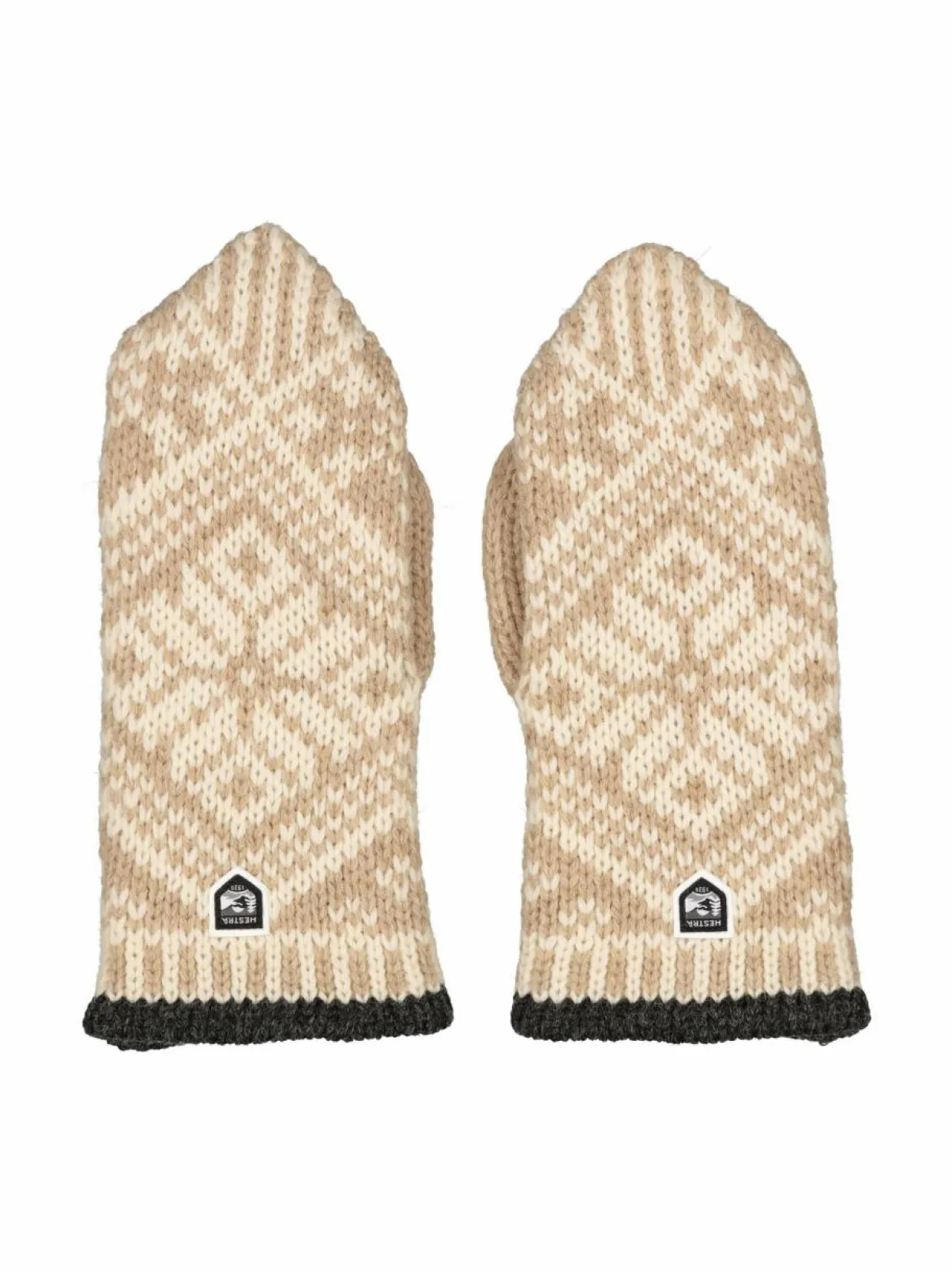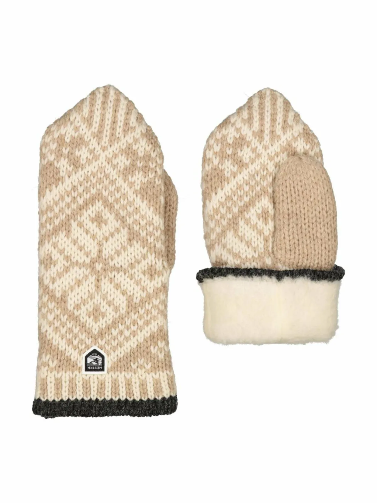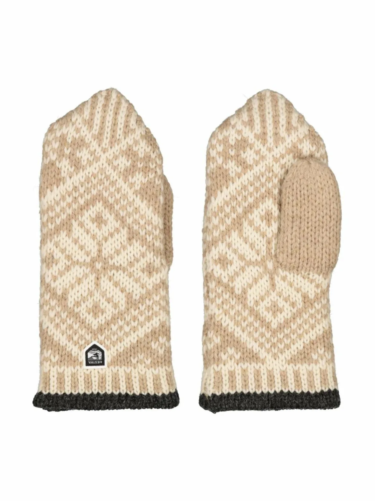 Hestran Nordic-villalapasissa on klassinen kuviointi ja kontrastireuna. Ne on valmistettu villasta, jossa on ripaus polyamidia. Lapaset on viimeistelty brändin logolla.