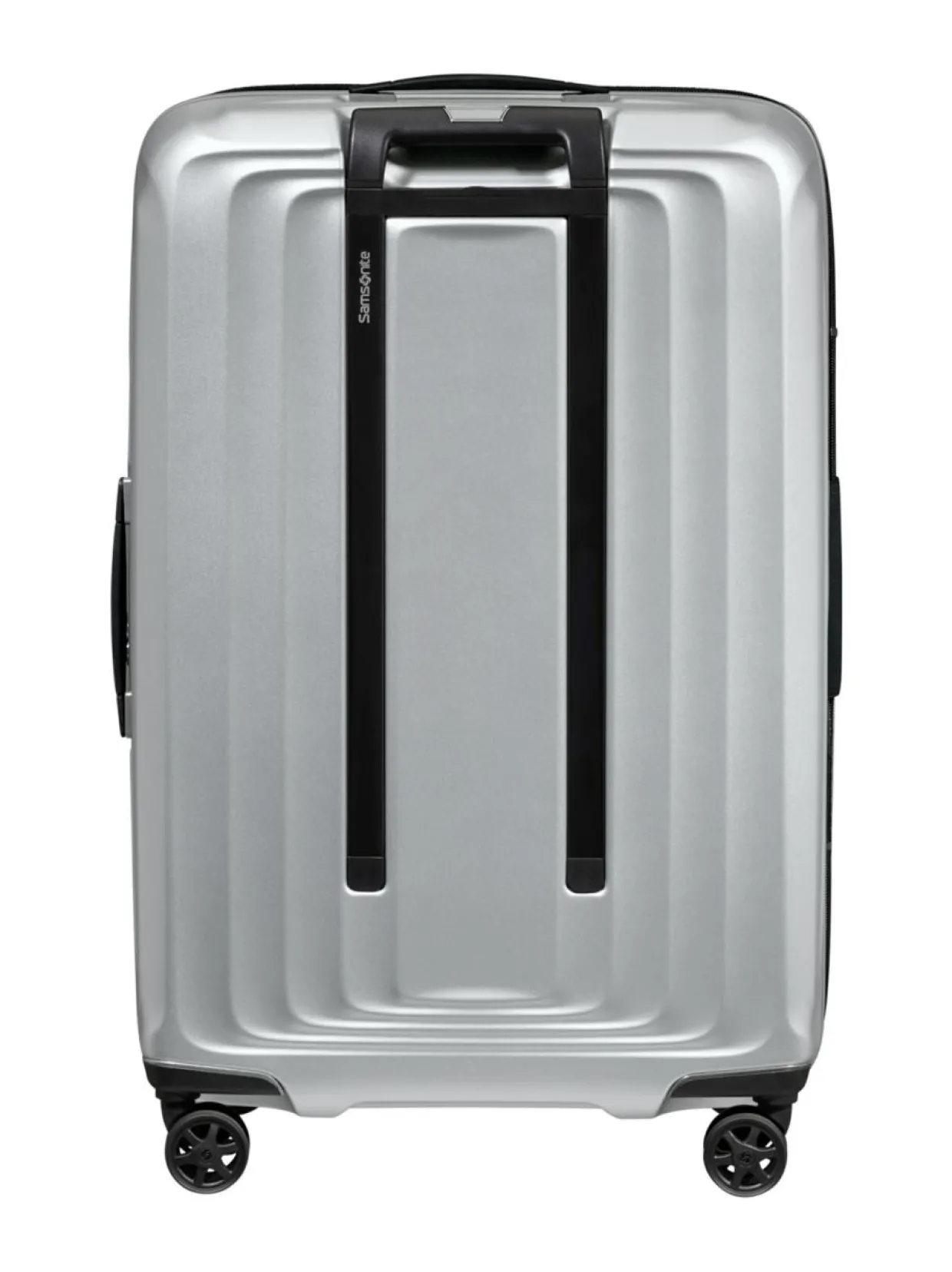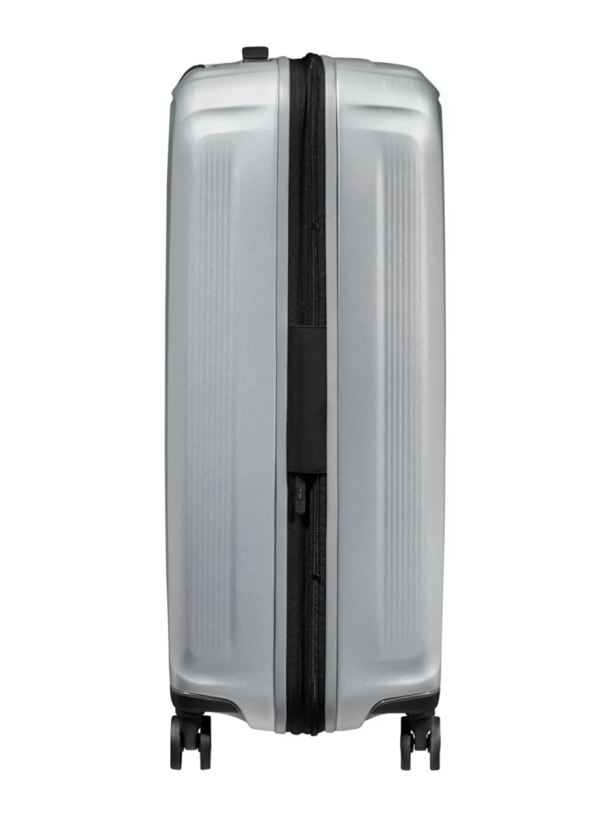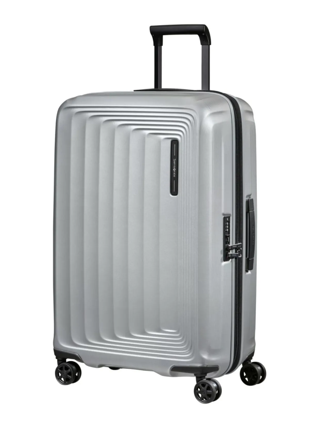 Samsonite Nuon -matkalaukku on valmistettu laadukkaasta ja kevyestä polycarbonaatista ja sen muotoilu varmistaa maksimaalisen tilan tavaroillesi. Saat eroteltua tavarasi taskullisella tilanjakajalla ja säädettävillä henkseleillä. Irrotettavan ja pestävän vuoren ansiosta saat pidettyä laukun puhtaana. Tuplapyörät vähentävät ääntä ja tärinää, sekä takaavat että laukun kanssa on mukava liikkua. Nuon-matkalaukkujen vuorikangas on valmistettu 100% kierrätetyistä materiaalista (Recyclex®). Käytämme 8-14 (0,5l) pulloa laukkua kohti.