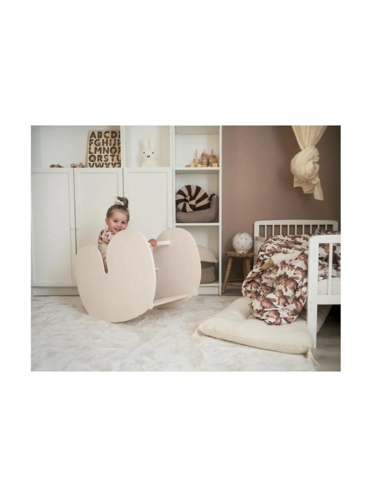 NUPPU on aivan uudenlainen keinuhevonen. Sen leikittelevä ja pehmeän abstrakti muotokieli mahdollistaa tuotteen käyttämisen myös toisin päin, jolloin sitä voi käyttää muihinkin tarkoituksiin. Kun NUPPU käännetään ympäri, se muuntautuu keinuhevosesta pienten lasten pöydäksi ja penkiksi, tai suloiseksi yöpöydäksi.