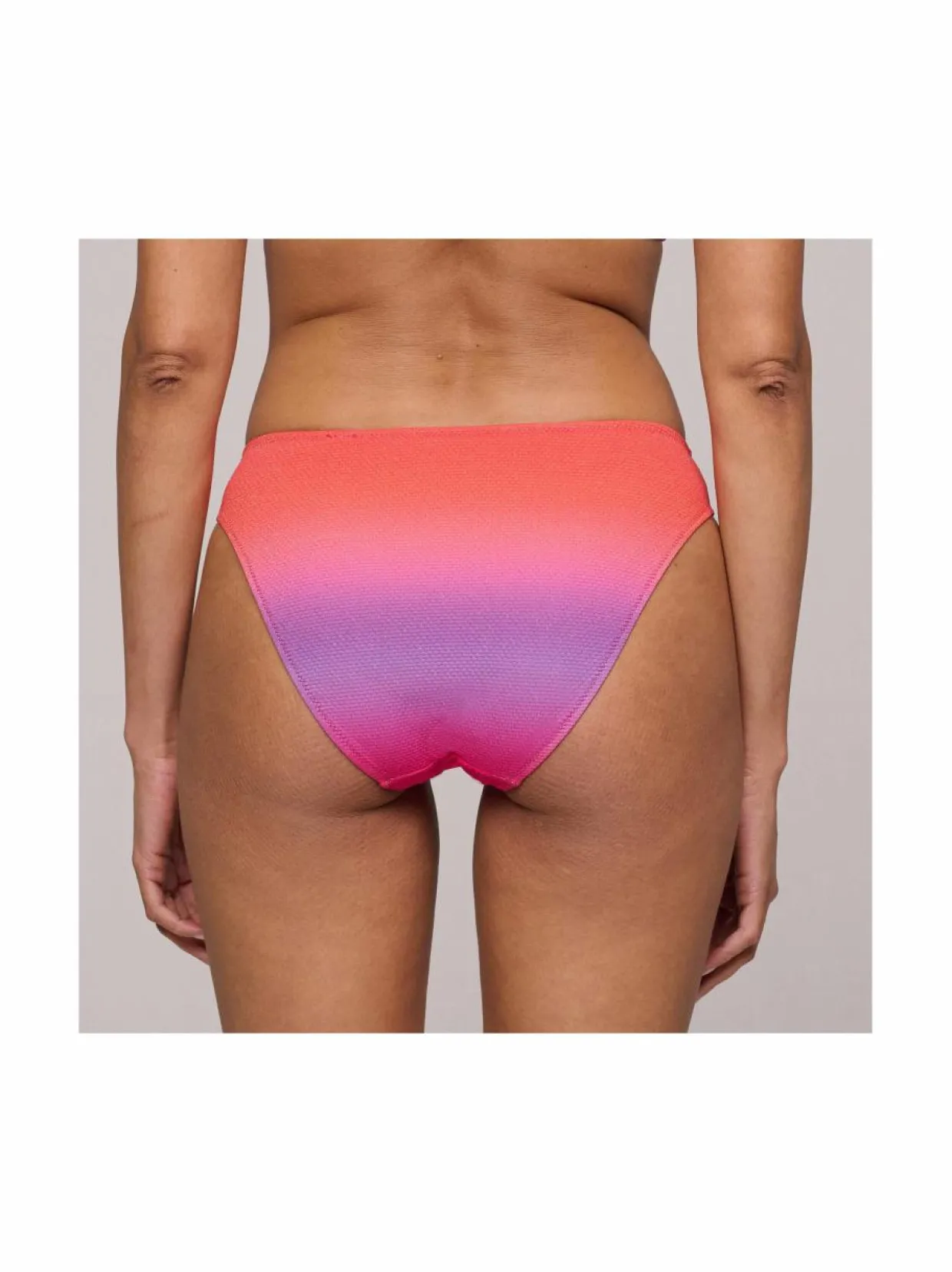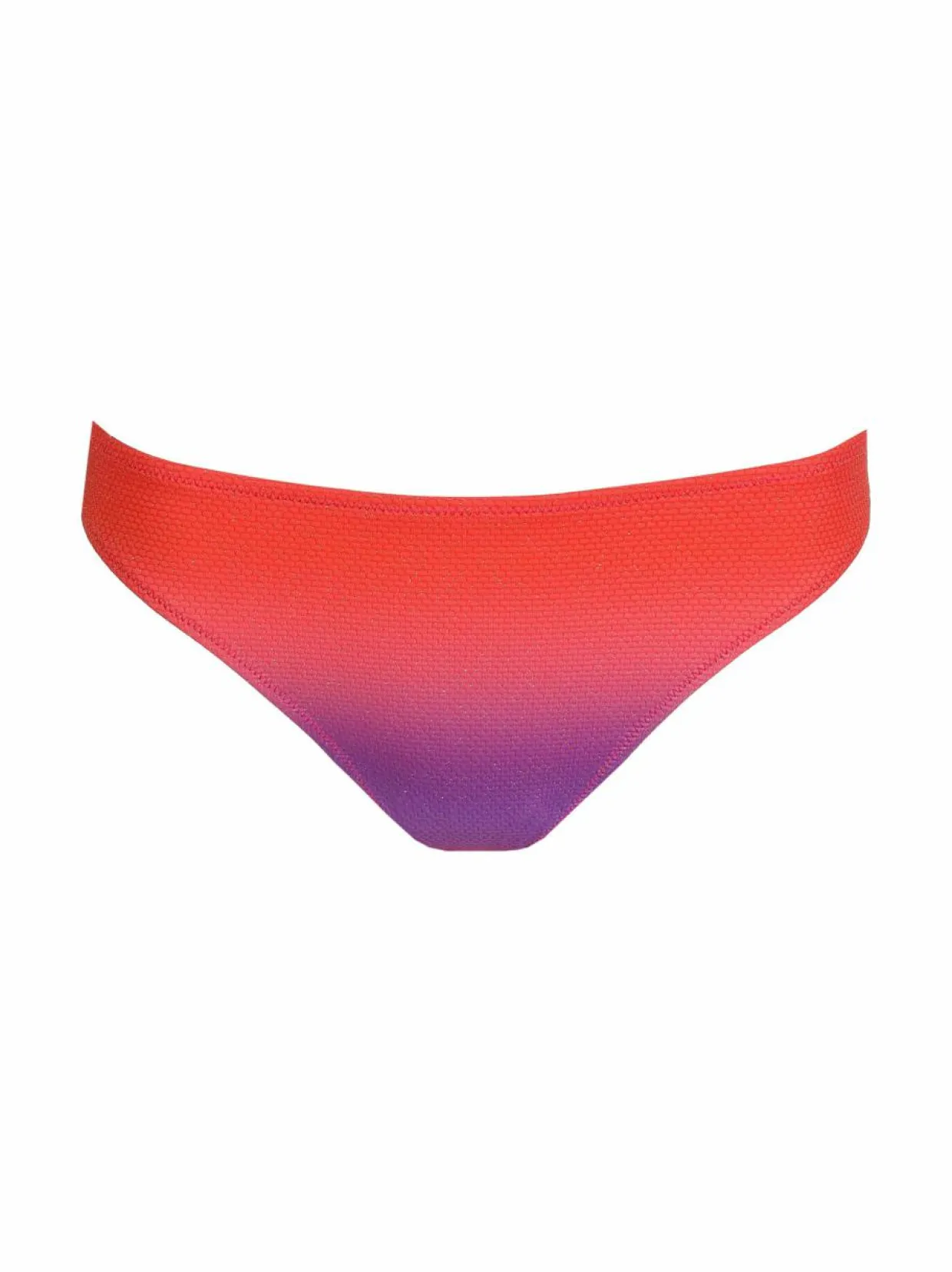 Marie Jo:n värikkäät Nusa Dua -bikinihousut on valmistettu joustavasta ja nopeasti kuivuvasta kankaasta, jossa on hennosti kiiltävä pinta. Bikinialaosan jalantie on korkea ja vyötärö keskikorkea.