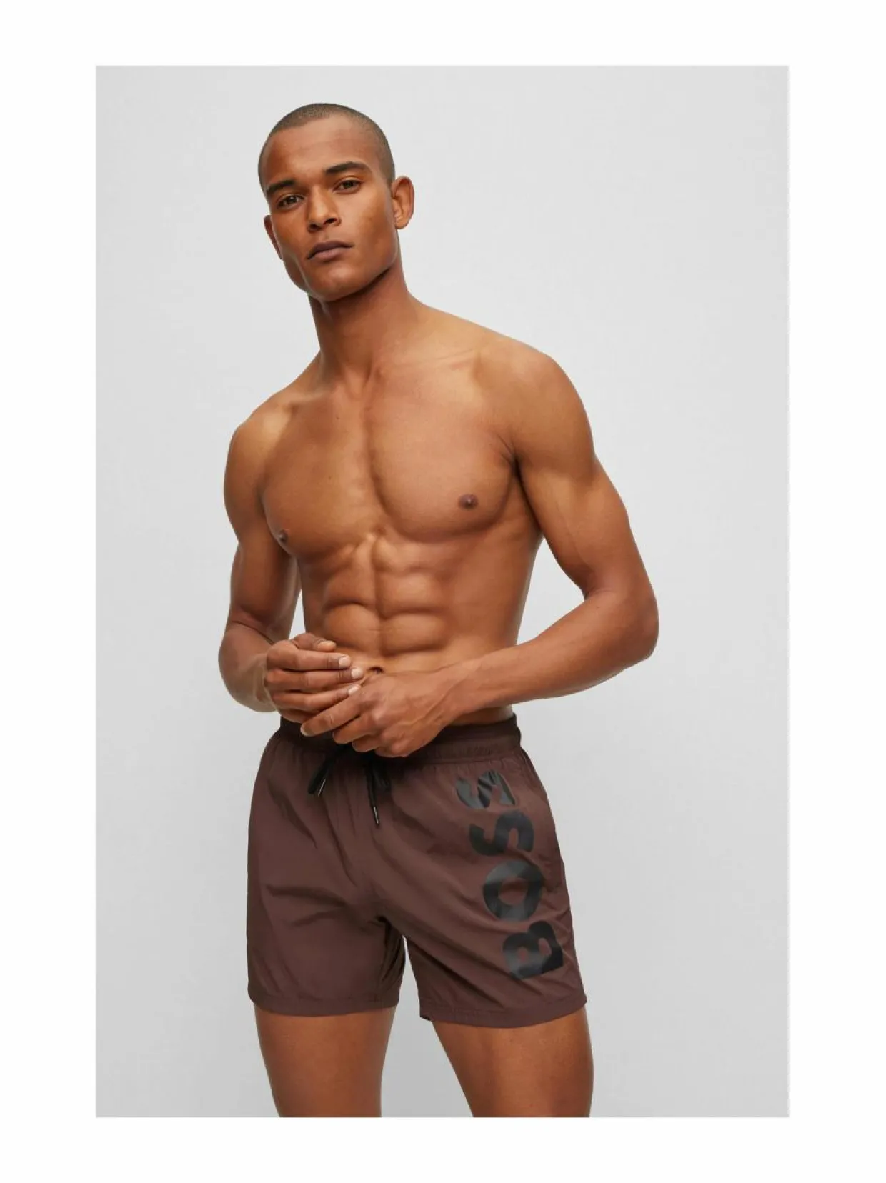 Täysin vuoratut taskulliset uimashortsit on nopeasti kuivuvaa materiaalia. Vyötärölinja on säädettävä ja joustava. Vasemmassa lahkeessa näyttävä logoprintti.