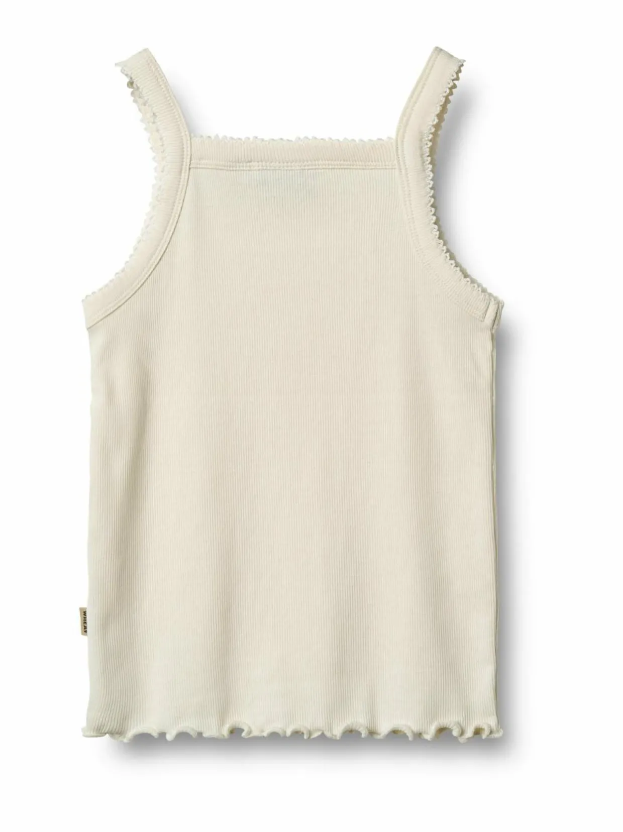 Wheat-merkinOlise-toppi on valmistettu pehmeästä ja mukavasta luomupuuvillasta. Paita on hihaton ja se on kaunis, istuva ja joustava, joka lisää sen monipuolisuutta. Toppi sopii yhdistettäväksi shortsin, housujen tai hameen kanssa.