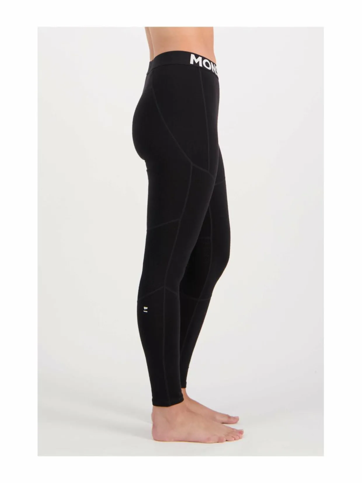 Lämpimät ja joustavat merinovillaiset leggingsit, joita voi käyttää sellaisinaan tai kerrastona. Erilaisista paneeleista ommeltu design ja joustava vyötärö takaavat hyvän istuvuuden. Vyötärö on kuvioitu logotekstillä.