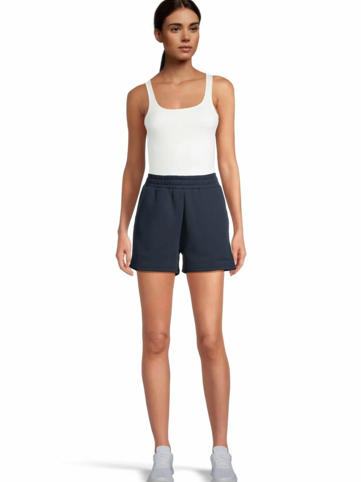 Mukavat shortsit kuntoiluun ja aktiiviseen vapaa-ajan viettoon. Miellyttävä joustovyötärö. Sivuissa viistotaskut ja lahkeessa hillitty logobrodeeraus. Valmistettu luomupuuvillan ja kierrätyspolyesterin materiaaliyhdistelmästä.