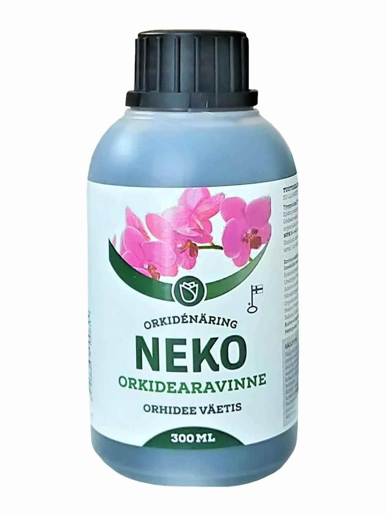 Nestemäinen Neko-orkidearavinne soveltuu kaikille orkidealajeille. Lannoittamalla orkideaa kasvukaudella säännöllisesti mutta maltilla, edistät sen hyvinvointia ja kukintaa. Riittoisaa ravinnetta annostellaan vajaa korkillinen (4 ml) vesilitraa kohden.