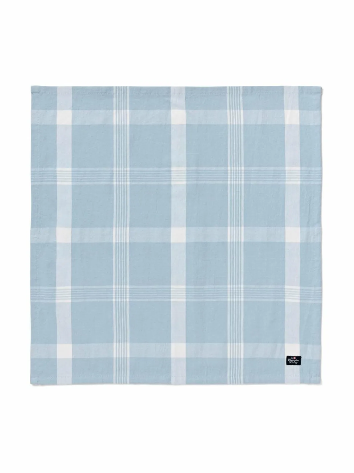 Lexingtonin Oxford -lautasliina on valmistettu kierrätetystä puuvillasta. Taitettu päärme ja logomerkki kulmassa.