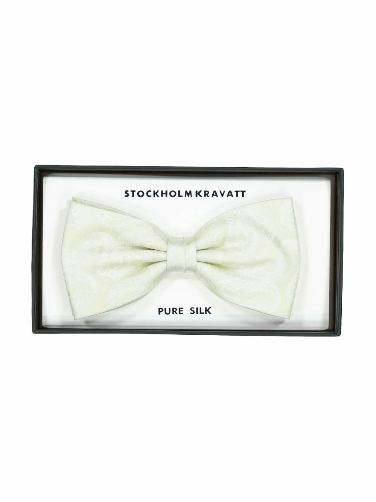 Tyylikkäässä Stockholm Kravattin silkkirusetissa on hienovarainen paisley-kuosi. Himmeästi hohtava silkki tuo ripauksen luksusta niin arki- kuin juhlapukeutumiseenkin. Valmiiksi solmitussa rusetissa on säädettävä nauha, joka kiinnitetään takaa hakasella.