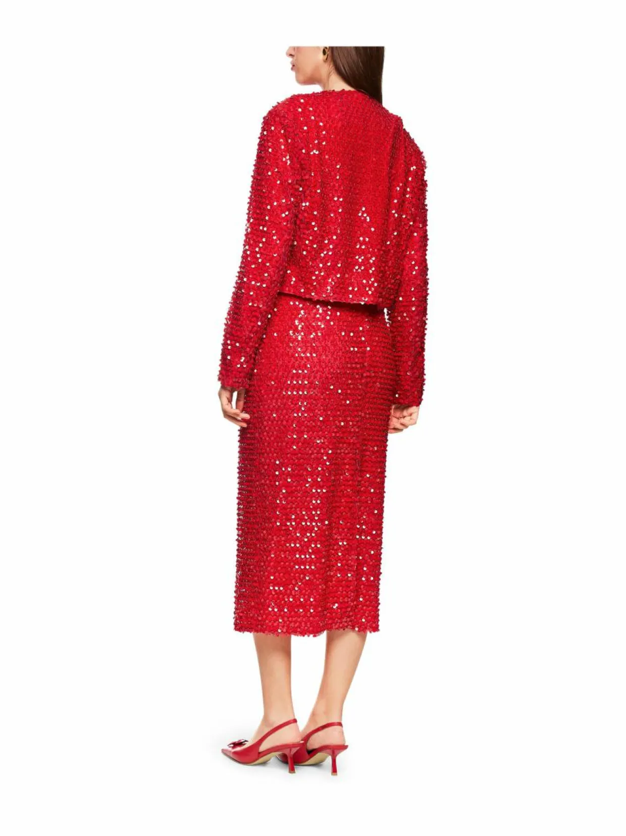 Materiaali100 % polyesteri Väri282 RED Avainsanatbleiseri, jakku, paljettijakku, juhlatakki, Marc Cain, kevyt takki, juhlableiseri