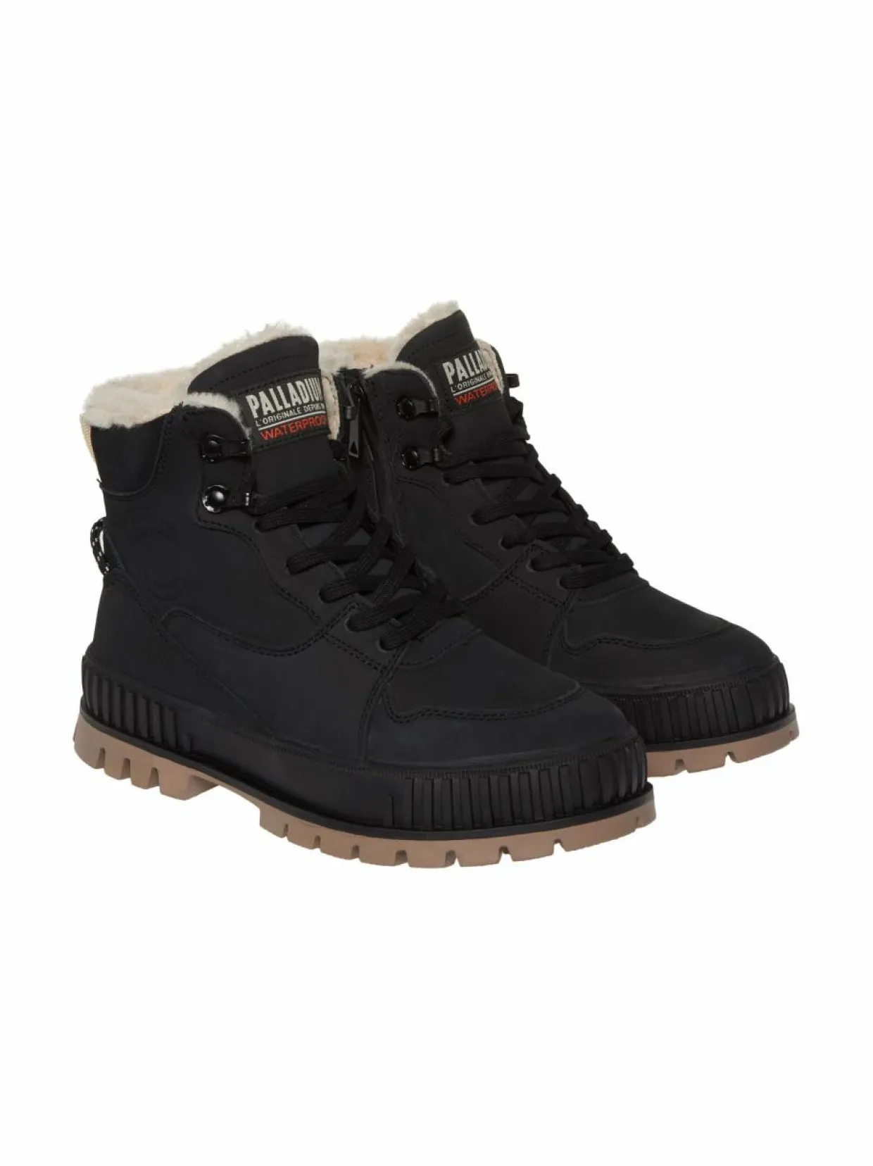 ErityistäVedenpitävät MateriaaliNahka VuorimateriaaliPolyester (tekoturkis) PäällinenNahka SisäpuoliTekstiili UlkopohjaKumi Koron korkeus2 cm KiinnitysNauhat ja vetoketju ValmistusmaaKiina Väri008 BLACK Avainsanatunisex, unisex kengät, nilkkurit, bootsit, palladium, talvikengät, vettähylkivä