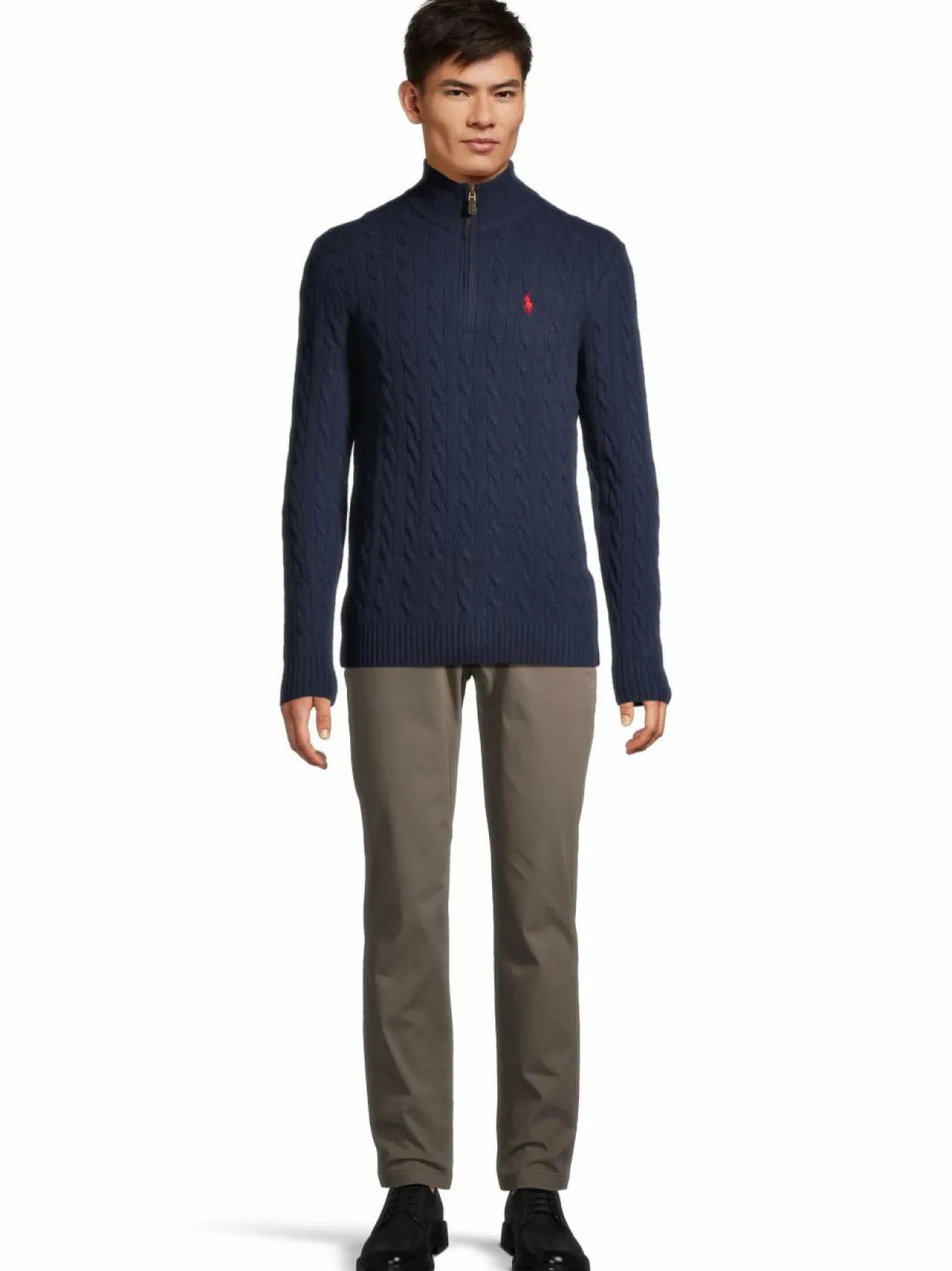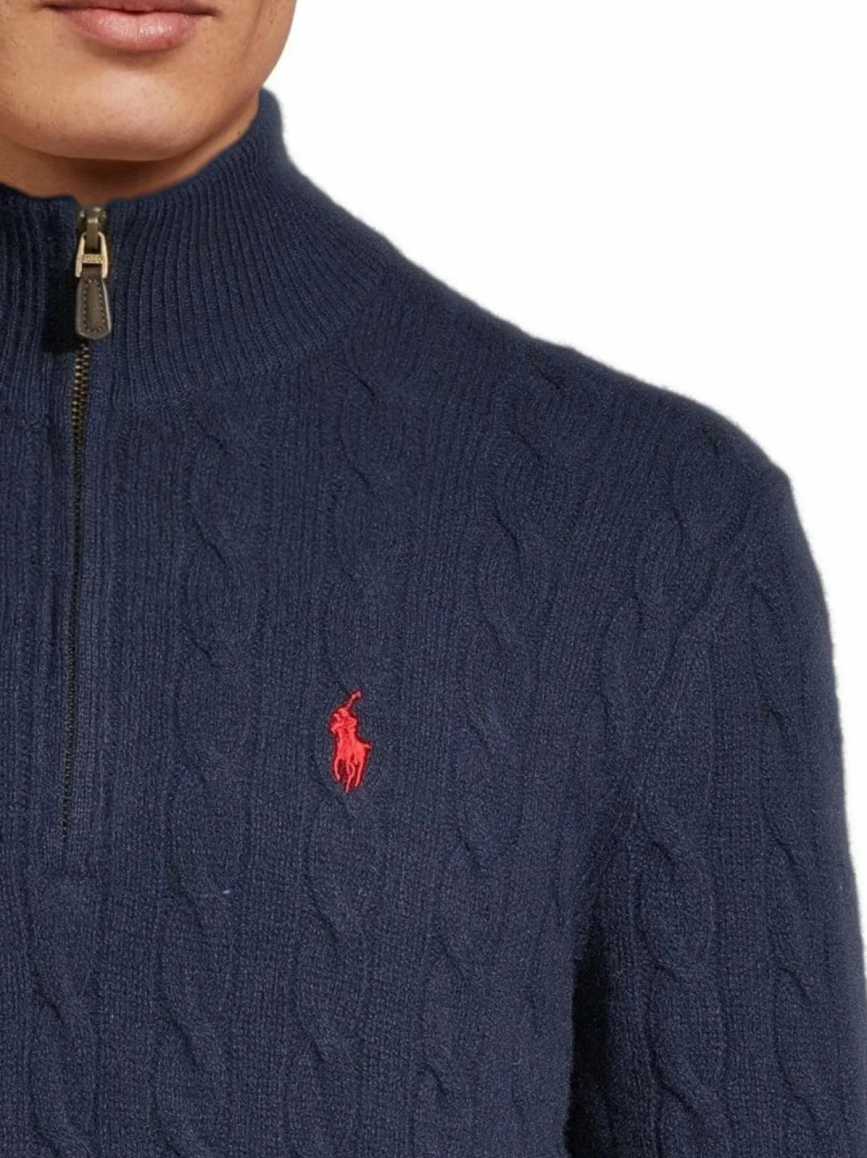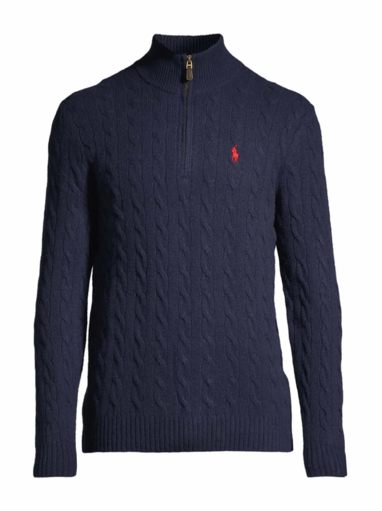 Polo Ralph Laurenin klassinen neule palmikkokuvioinnilla ja poolokauluksella. Kauluksen ja kaulan alueella on kätevä vetoketju. Rintaa koristaa logobrodeeraus. Neule on valmistettu pehmeästä villan ja kashmirin sekoitteesta.