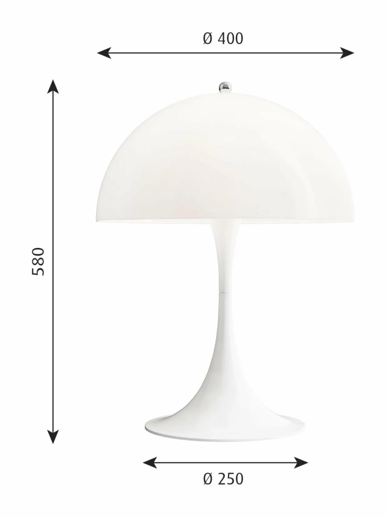 Louis Poulsen Panthella-pöytävalaisin antaa pehmeää ja miellyttävää valoa. Puolipallon muotoinen varjostin heijastaa valoa alaspäin. Varjostimen materiaalin ansiosta suurin osa valosta leviää pehmeästi ympäröivään tilaan.