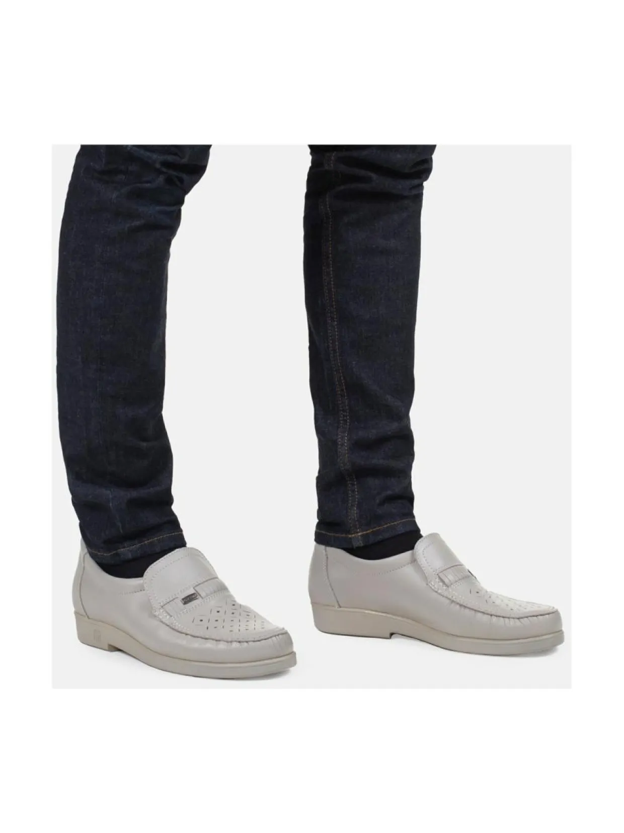 – Pieni venykeMateriaaliNahka UlkopohjaKevyt PU-pohja VäriLIGHT GREY NAPPA AvainsanatPAPPA mokkasiinit, loaferit, mokkasiini, Kävelykengät