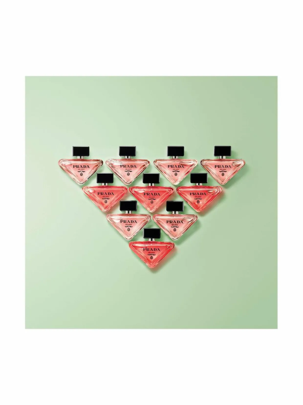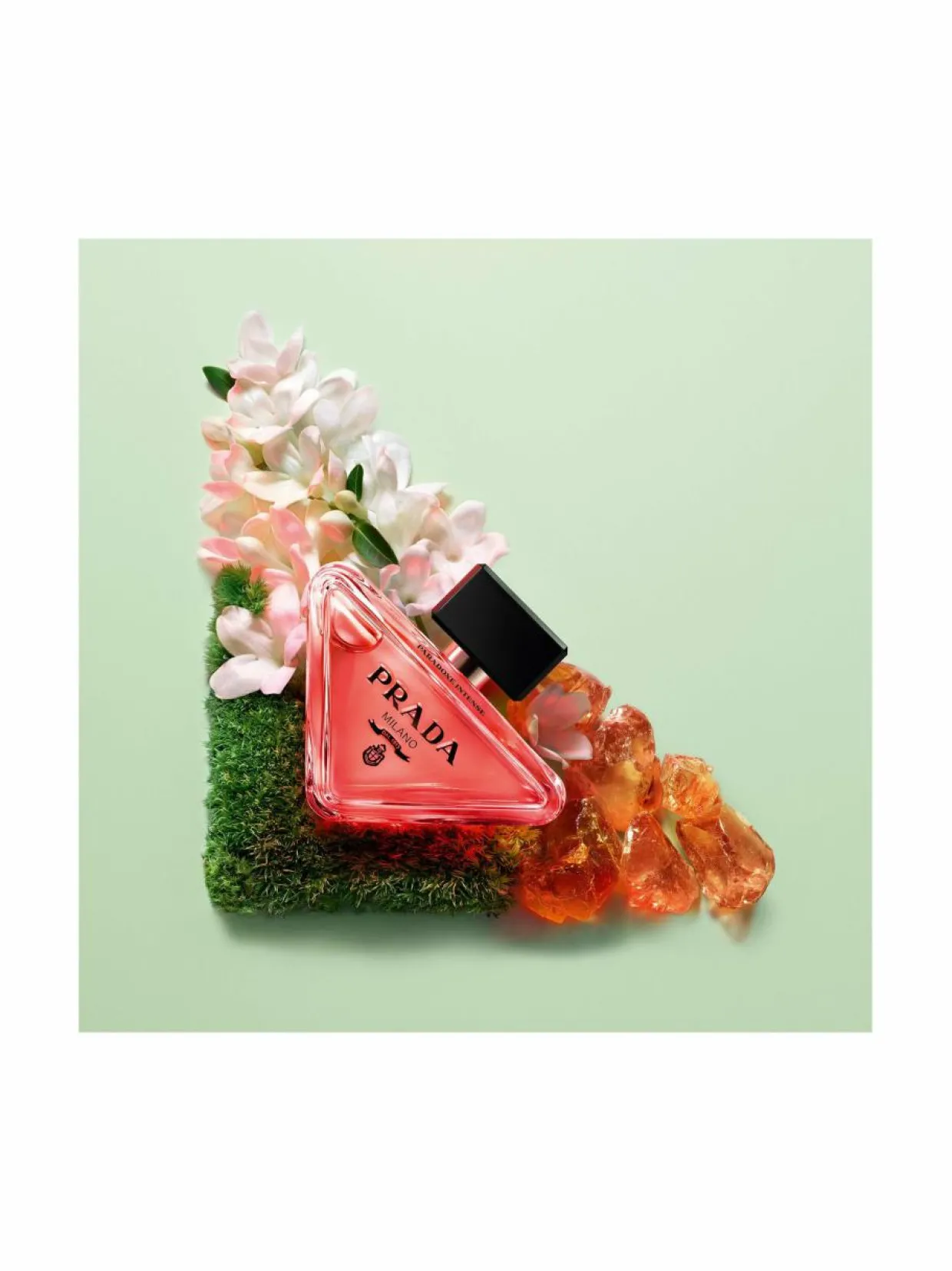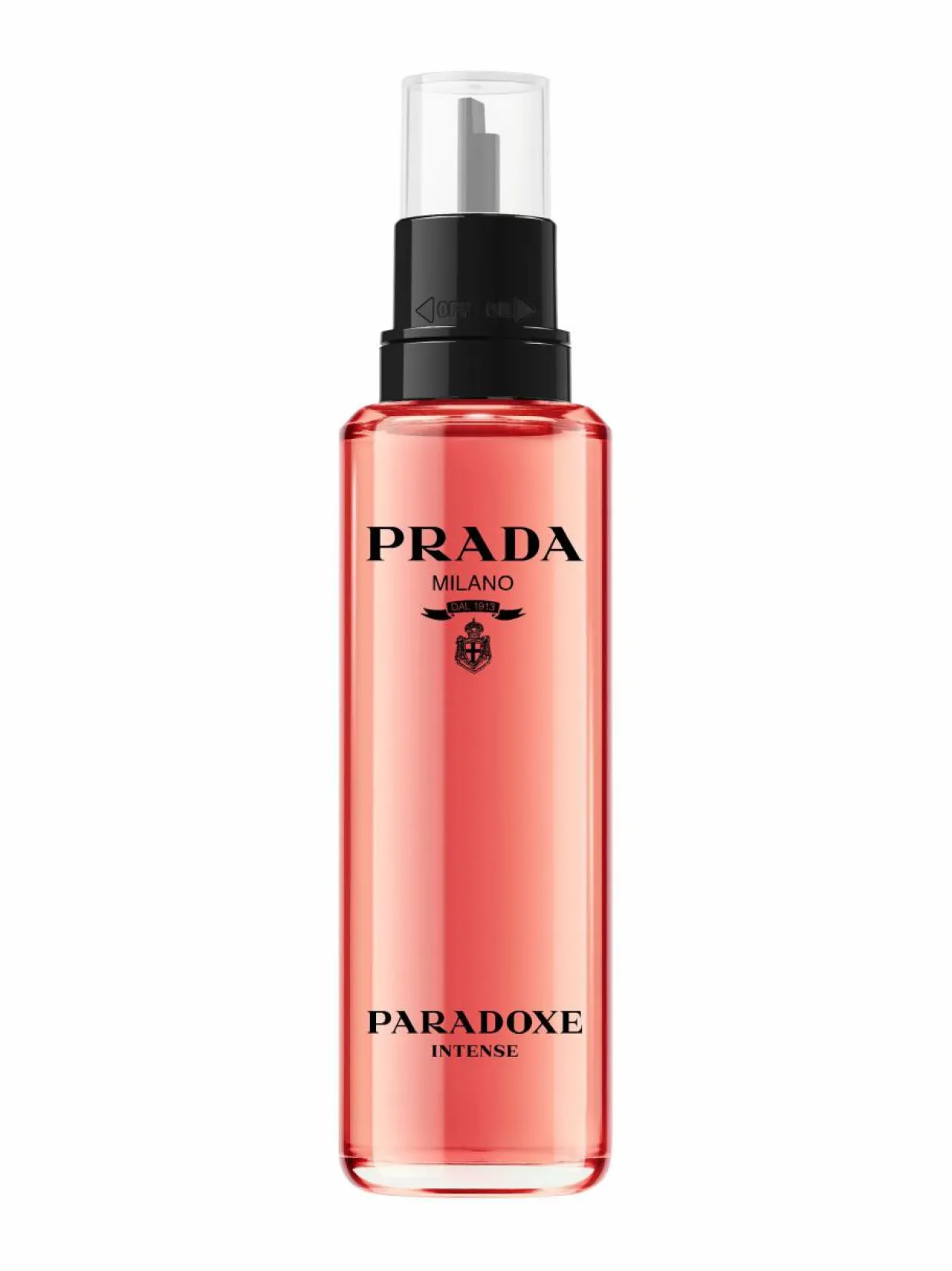 PULLO: HERKKÄ, MUTTA KAPINALLINENAlkuperäisen nimikkopullon tavoin Paradoxe Intensen päivitetty pullo ilmentää Pradan uudistumisen ydintä ja rakkautta kontrasteihin. Toisin kuin perinteinen pullomuotoilu, tämä pullo on ensisilmäyksellä minimalistinen ja herkkä. Se on saanut inspiraationsa alkuperäisestä ikonisesta Prada-kolmiologosta, joka on kapinallisesti suunniteltu lepäämään sivulla. Pradan vaakunalogo on vastakohtana tuoksun syvälle vaaleanpunaiselle värille. Pullon yläreunassa on ”Paradoxe Intense” -viiste.
